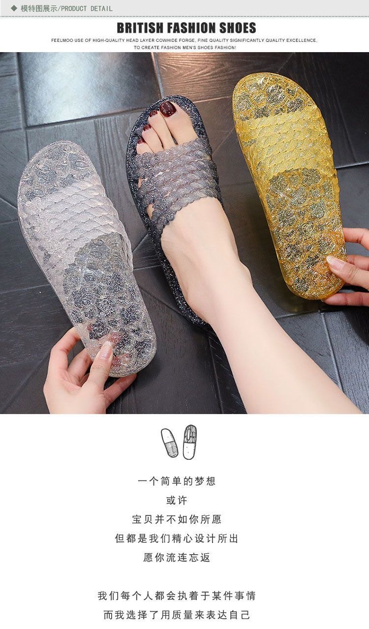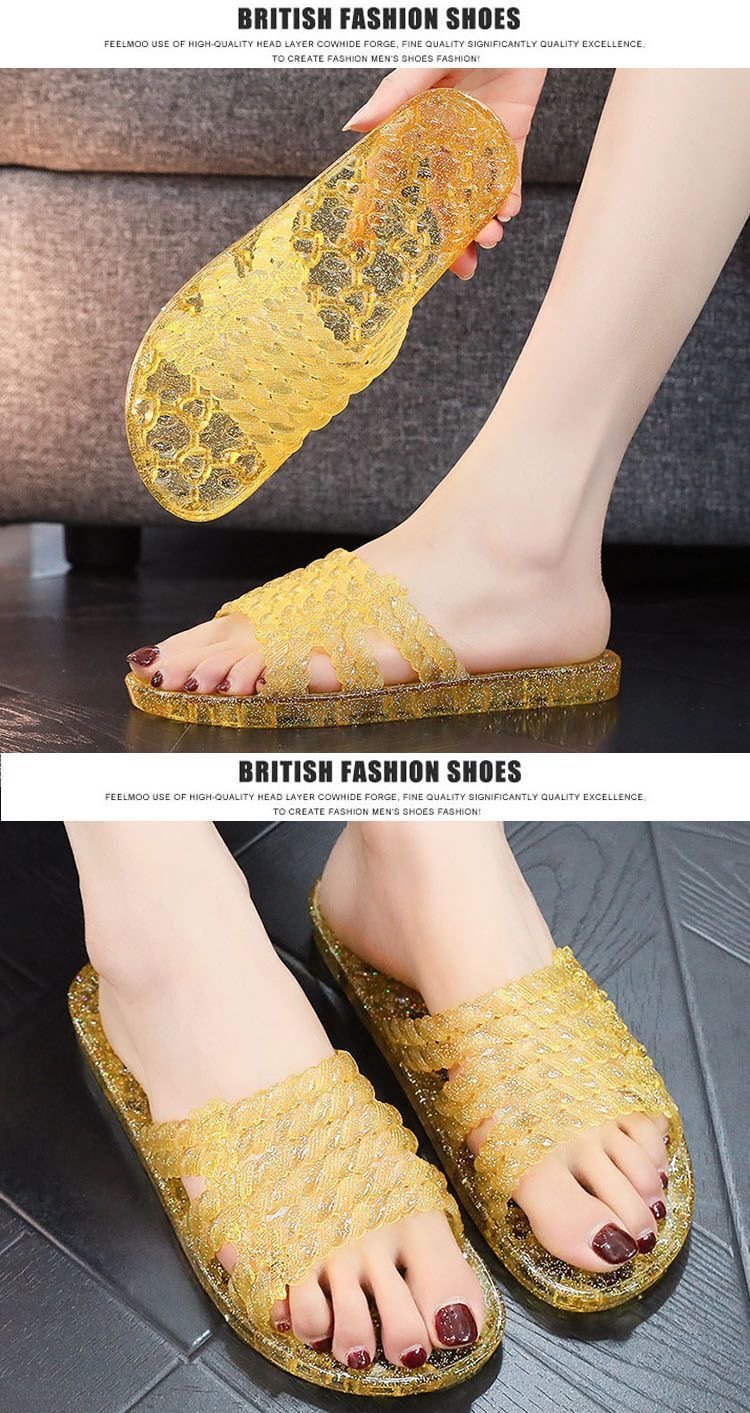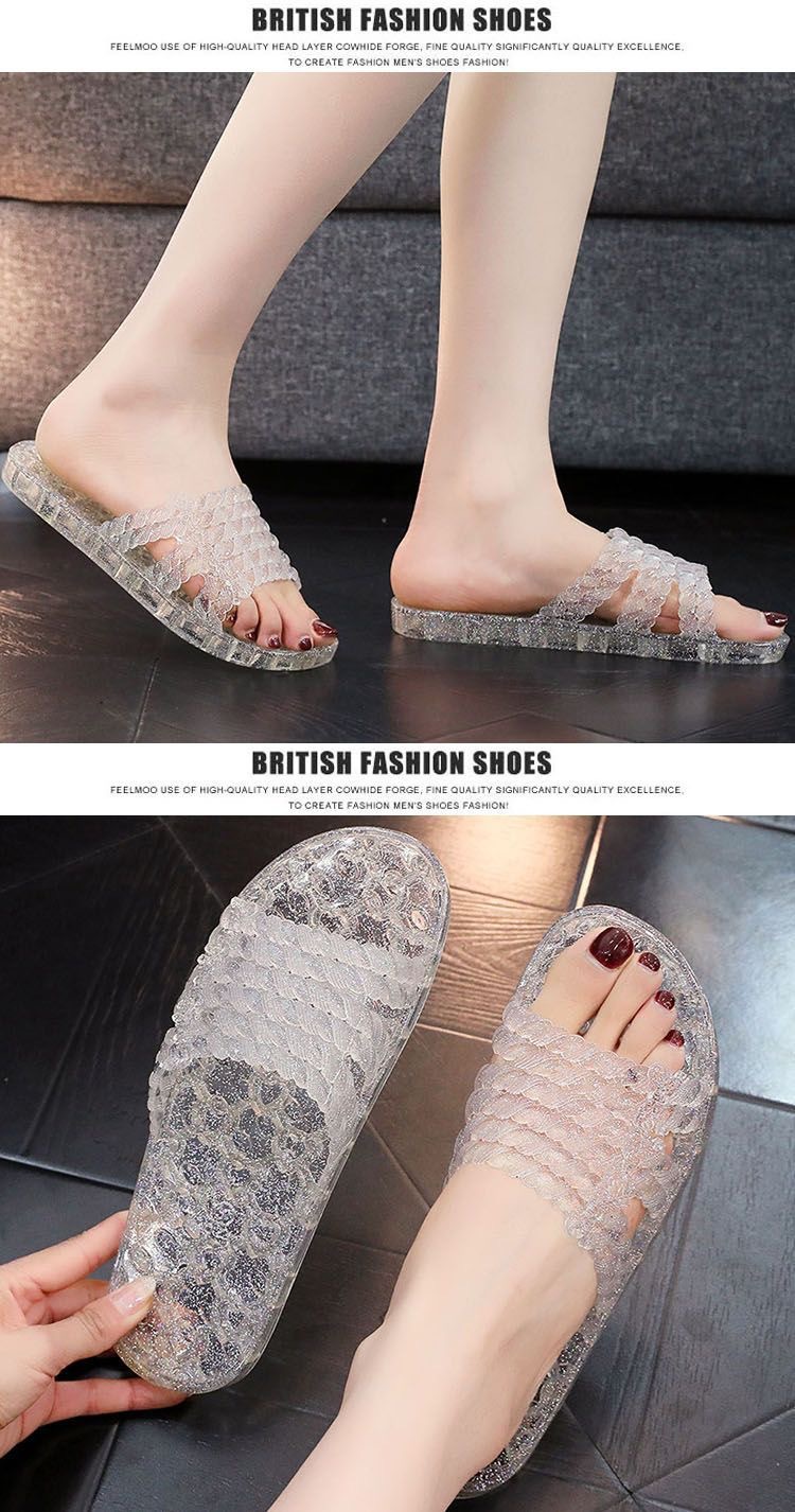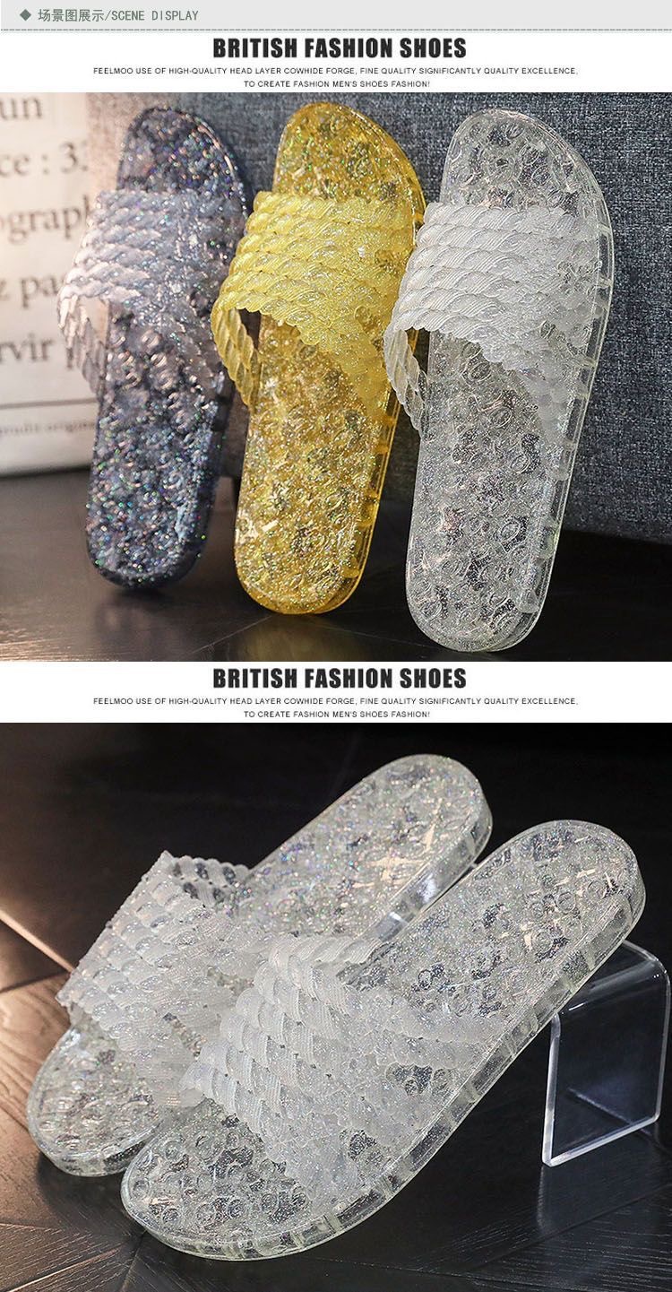 플랫 슬리퍼 크리스탈 슬리퍼 여름 여성용 통기성 부드러운 바닥 편안한 겉옷 홈 욕실 미끄럼 방지 탈취제 슬라이드 걸레스토어 가기