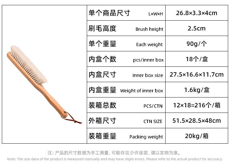 刷板尺寸:26.8*3.3*1.5cm(±0.1cm)
