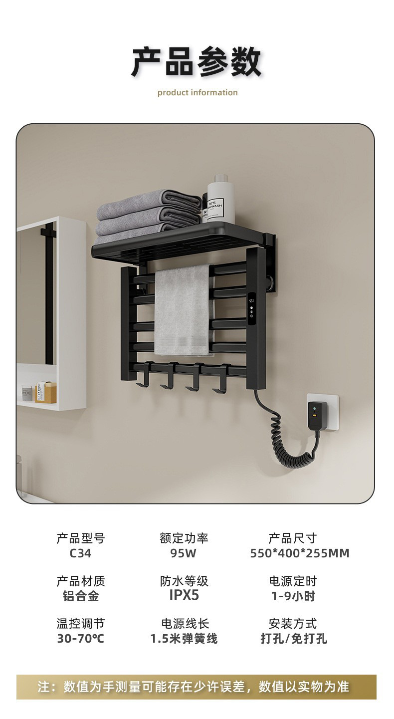 스마트 특수 수건 랙 가정용 화장실 일정한 온도 휴대 전화 전기 난방 타월 랙 펀치 프리 스토리지 랙