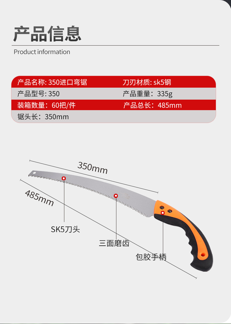 제조업체 도매 350 수입 수제 곡선톱 정원 도구 녹화 과수 가지치기용 sk5 톱날 손톱재벌톱스토어 가기