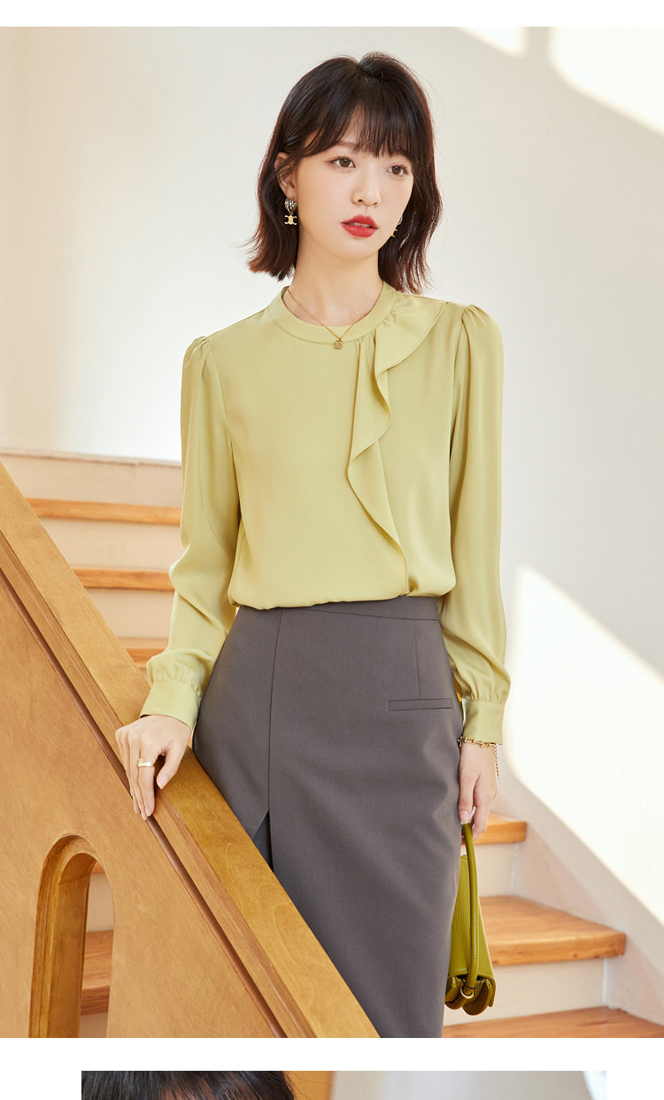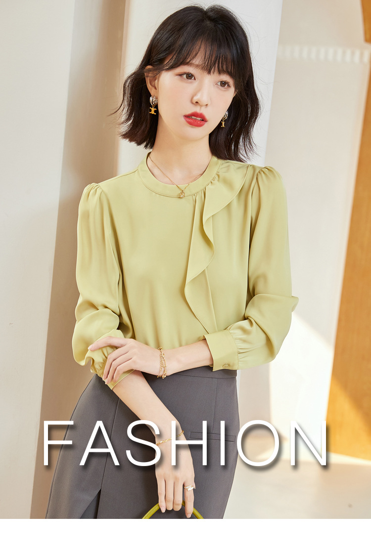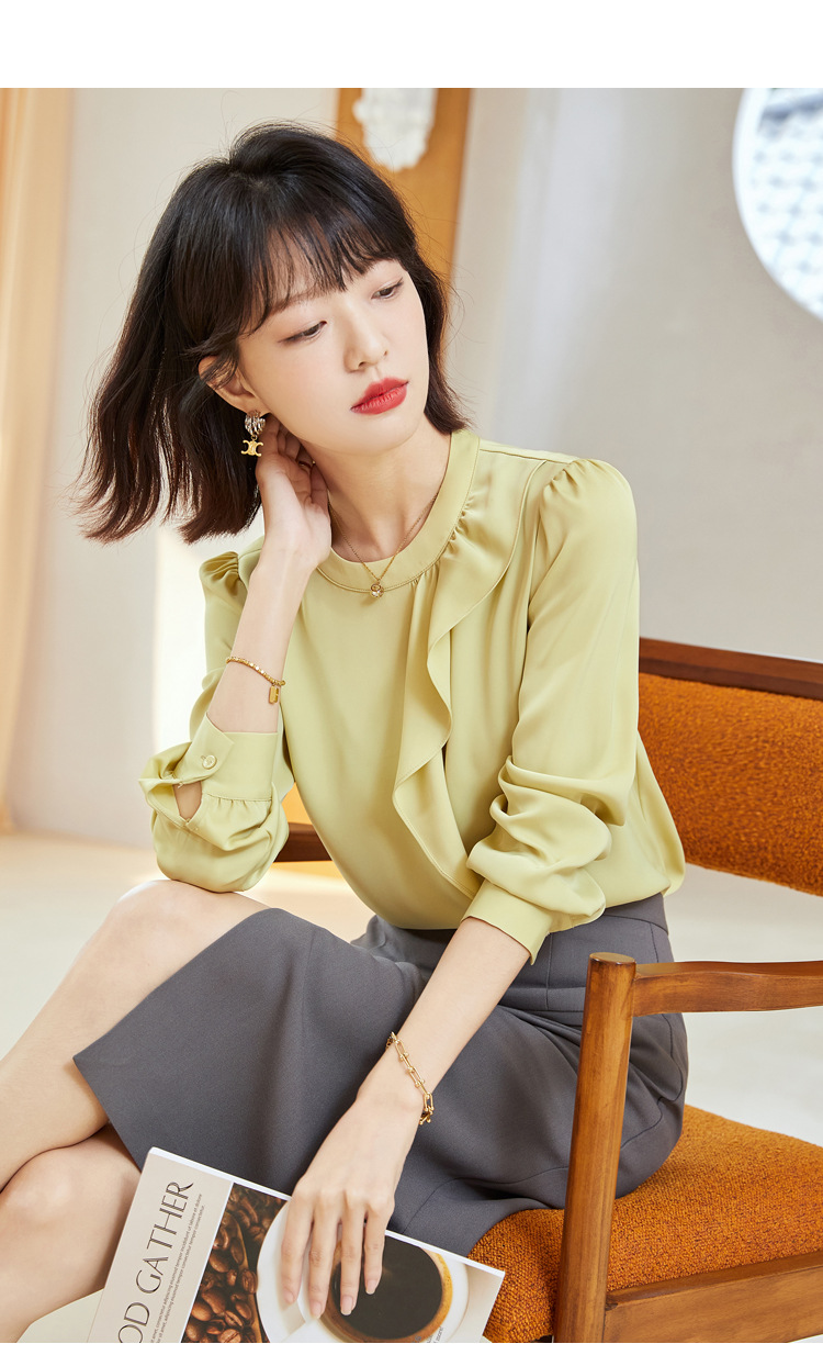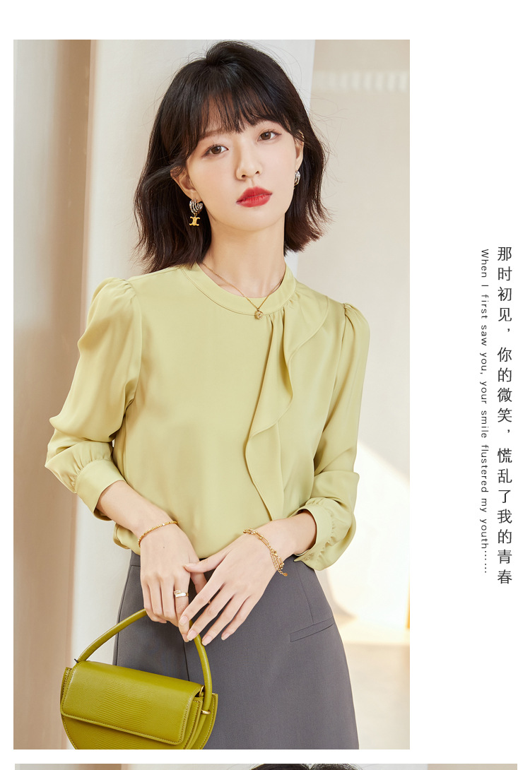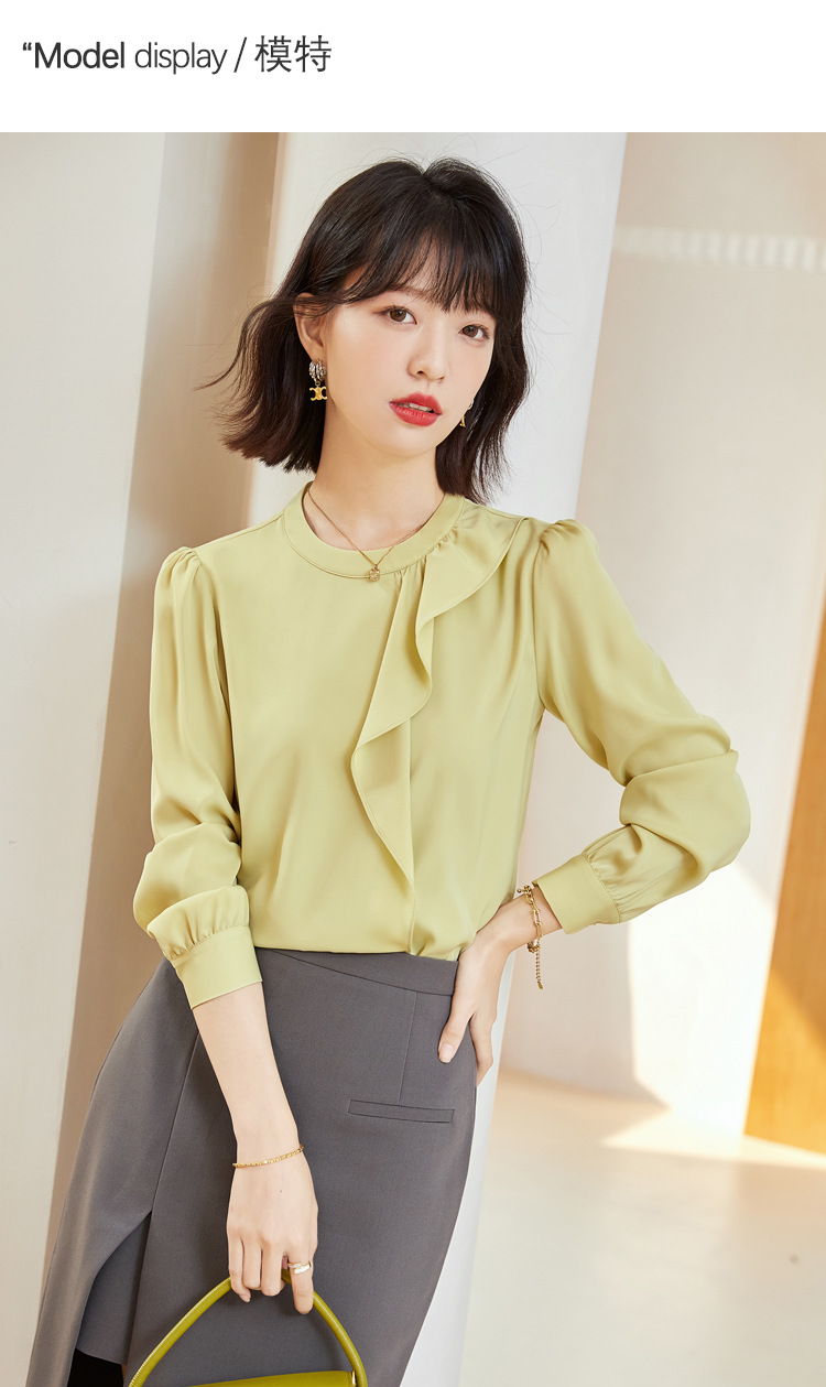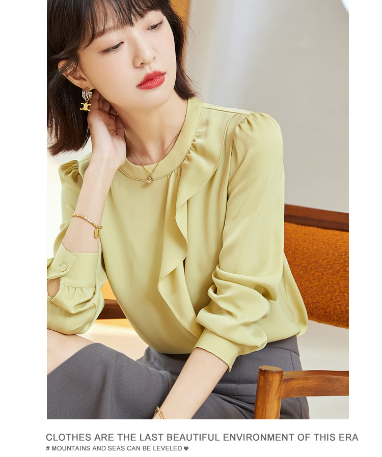 봄과 가을 프랑스 우아한 리얼 샷 부드러운 기질 프릴 디자인 웨스턴 스타일 긴 소매 쉬폰 셔츠 여성 의류스토어 가기