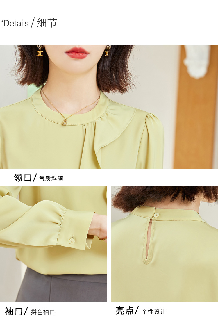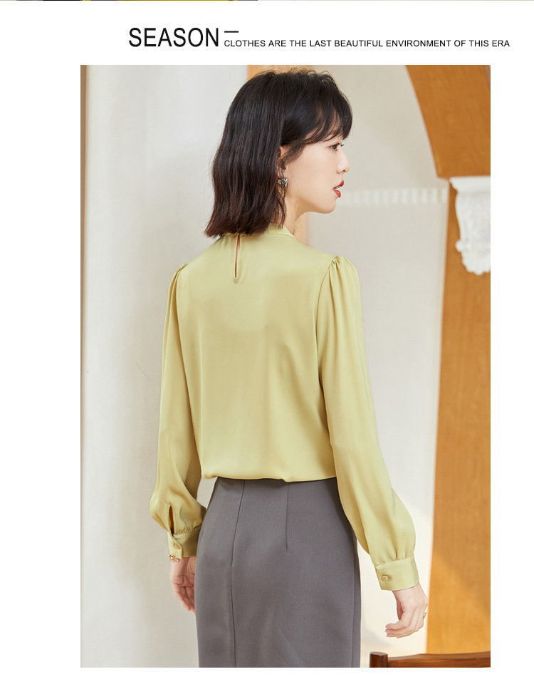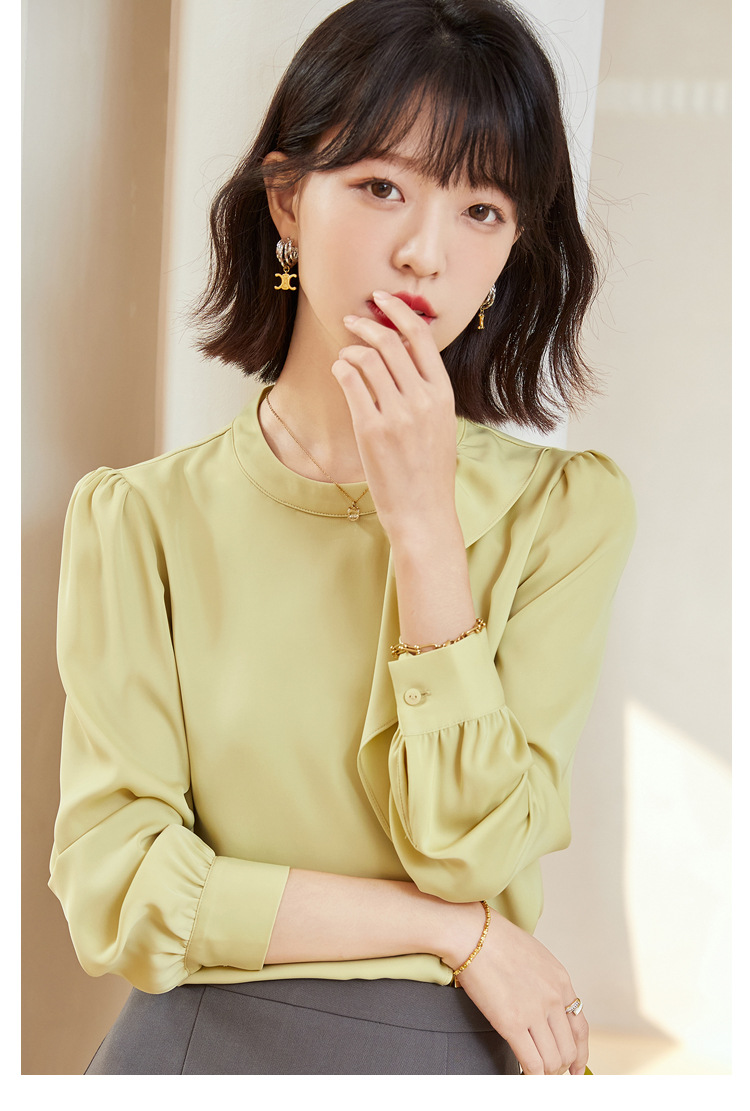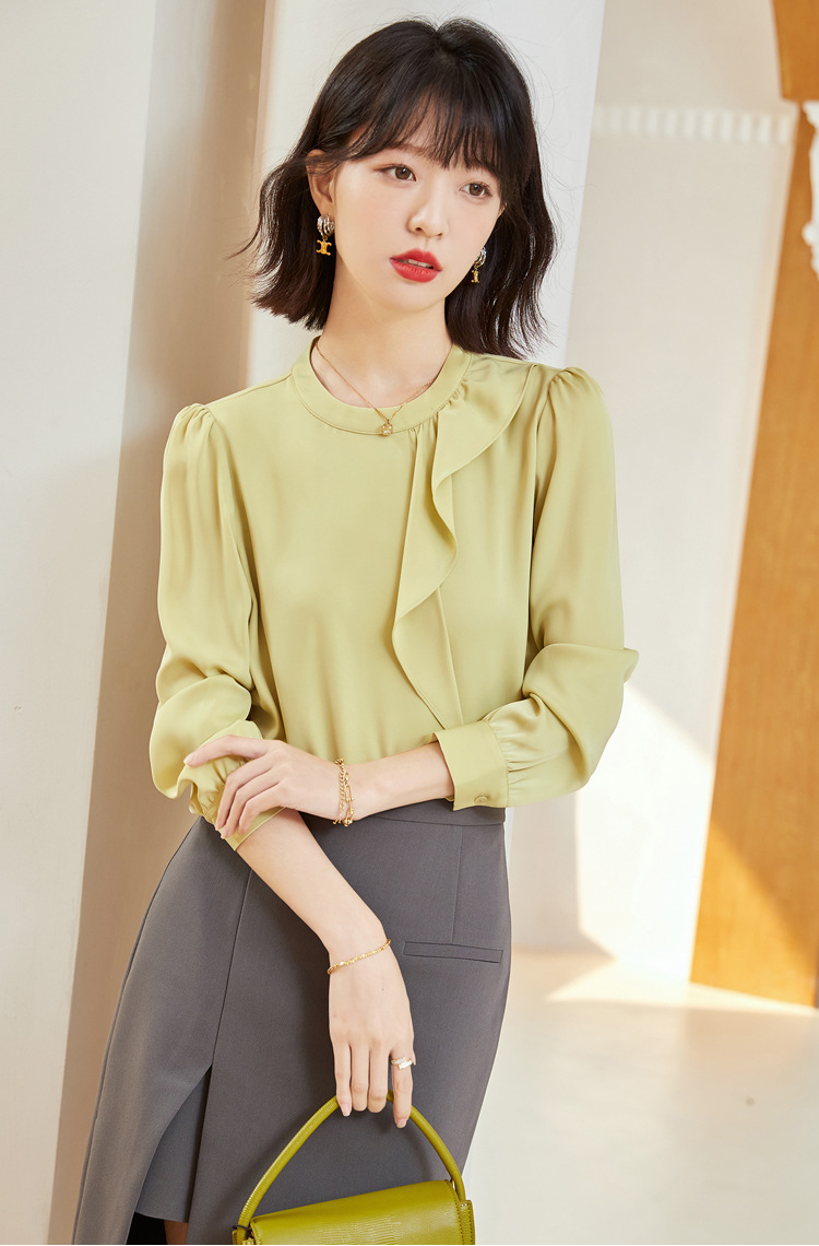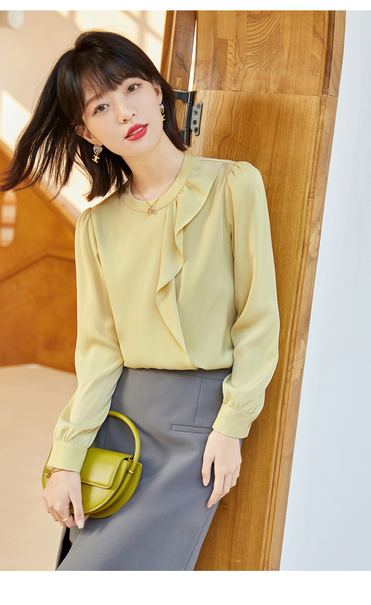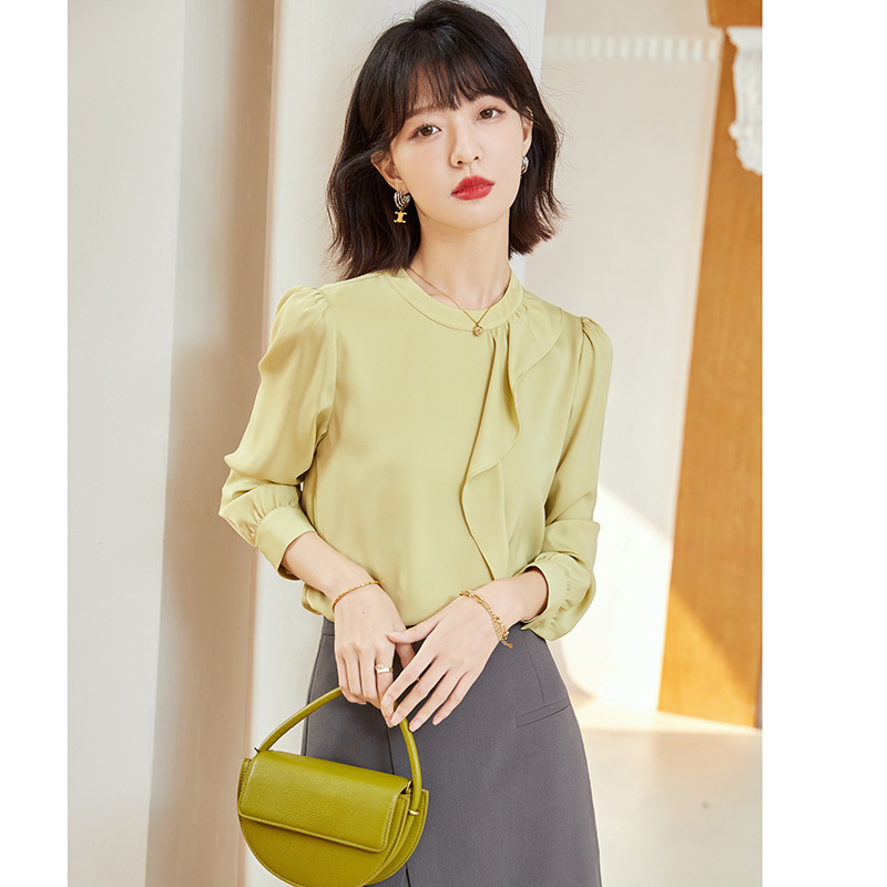 봄과 가을 프랑스 우아한 리얼 샷 부드러운 기질 프릴 디자인 웨스턴 스타일 긴 소매 쉬폰 셔츠 여성 의류