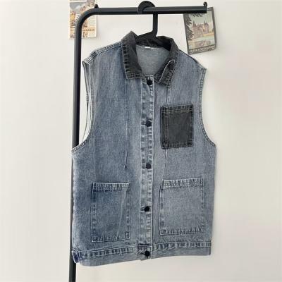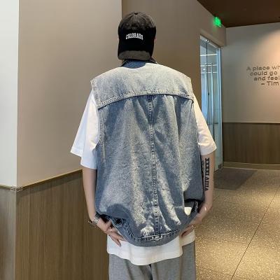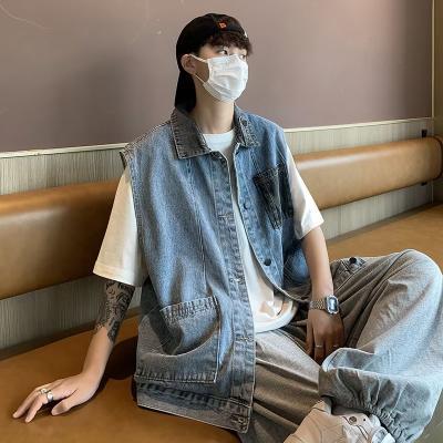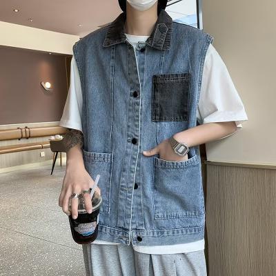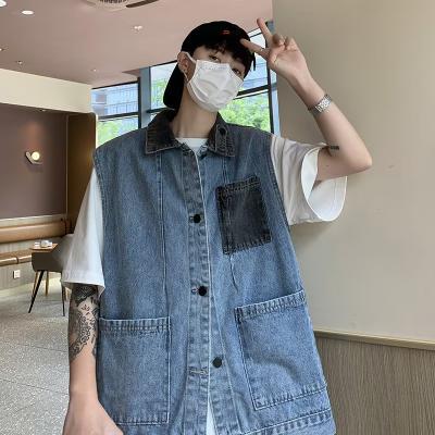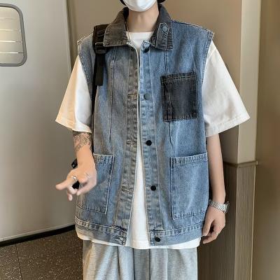 아메리칸 스타일 레트로 컬러 매칭 데님 조끼 재킷 남자의 봄 착용 한국 스타일 느슨한 스트레이트 민소매 외부 재킷 탑스토어 가기