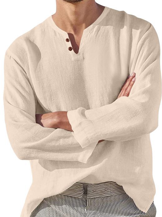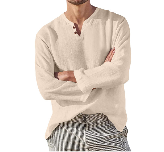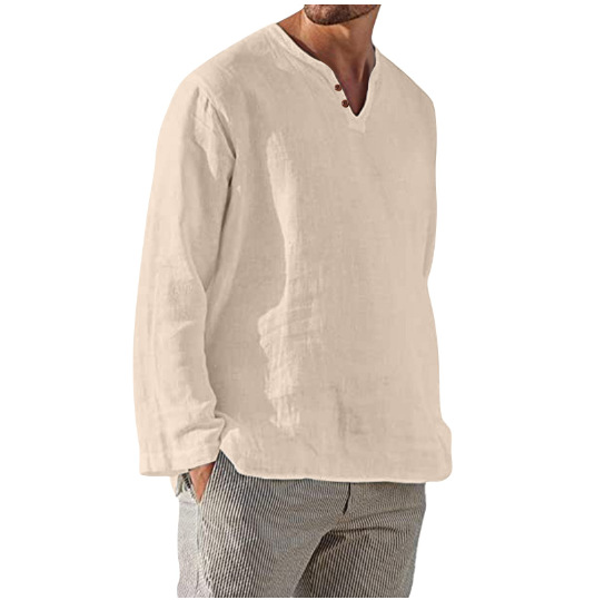 2023 아마존 소원 독립 역 뜨거운 판매 남자의 긴 소매 V-넥 캐주얼 비치 린넨 셔츠 남자
