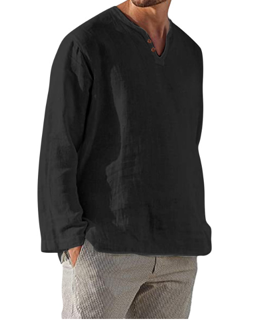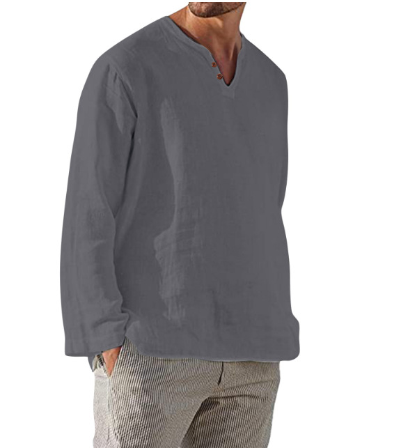 2023 아마존 소원 독립 역 뜨거운 판매 남자의 긴 소매 V-넥 캐주얼 비치 린넨 셔츠 남자스토어 가기