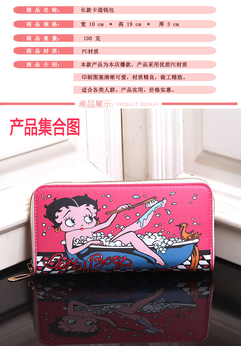 향수를 불러 일으키는 레트로 베티 베티 밥 만화 귀여운 어린이 지갑 대용량 긴 여성용 동전 지갑스토어 가기
