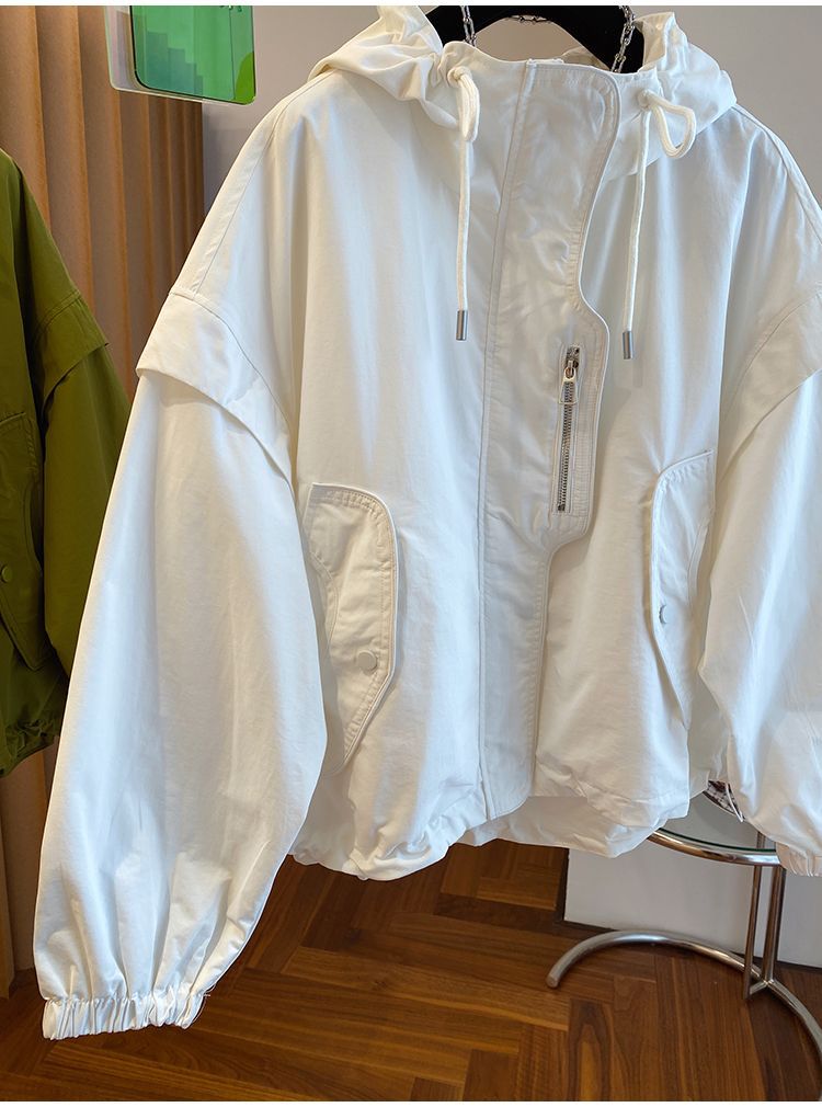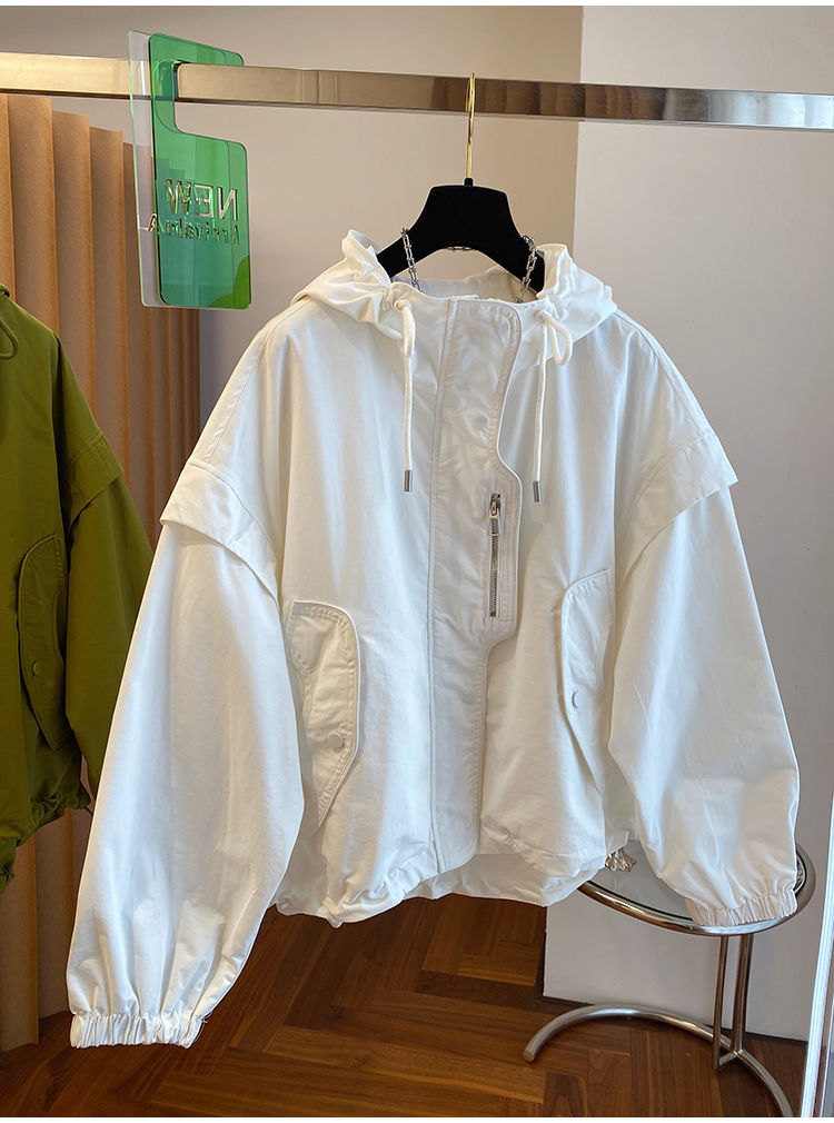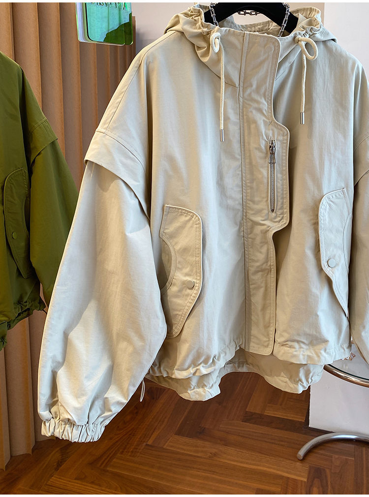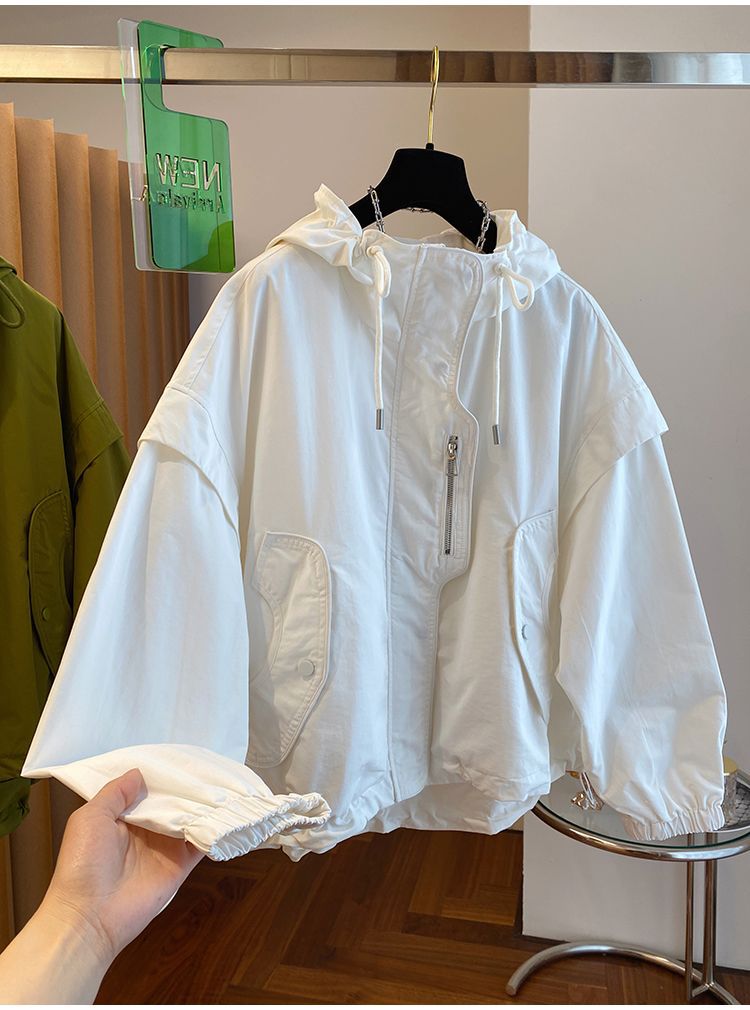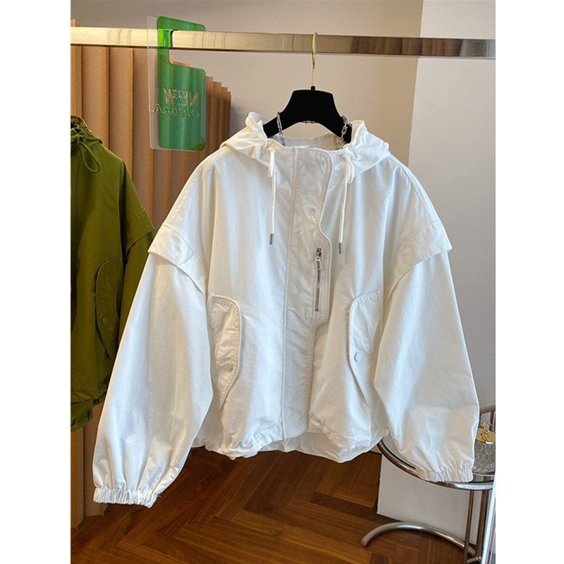 디자인 감각이 돋보이는 여성용 루즈핏 캐주얼 후드 숏자켓 2024년 신상 초가을 스타일 야구점퍼