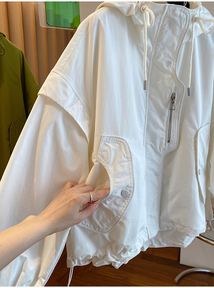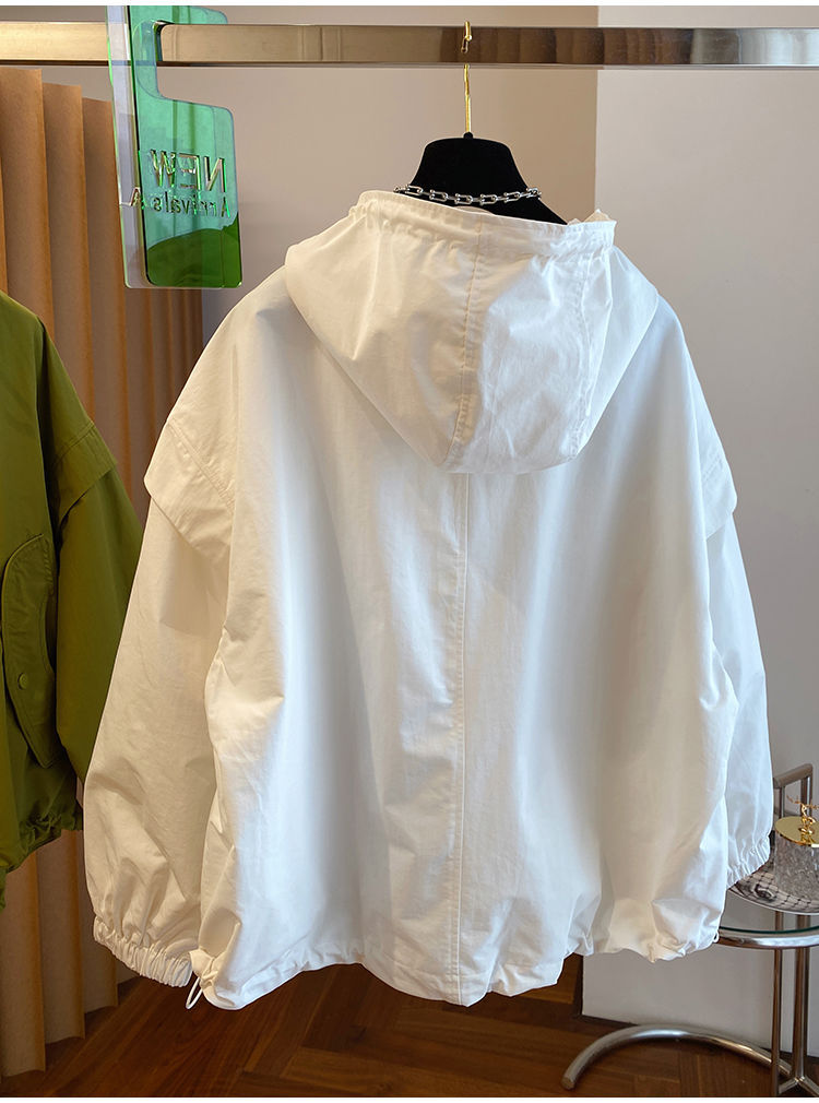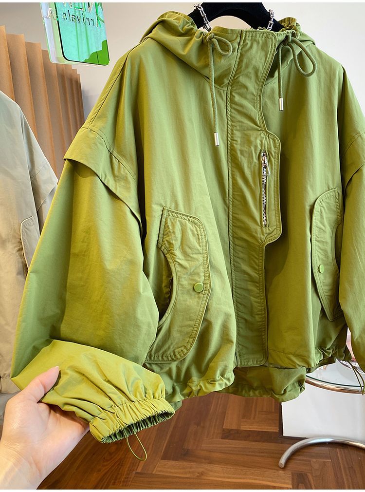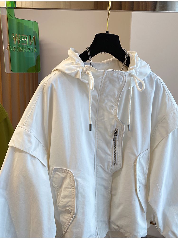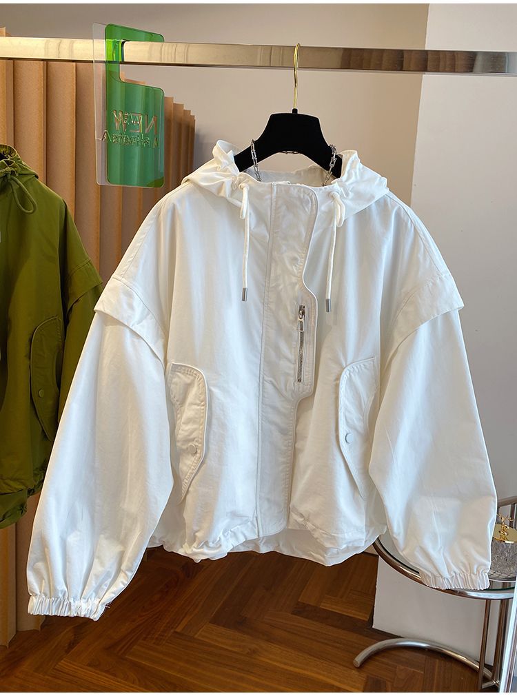 디자인 감각이 돋보이는 여성용 루즈핏 캐주얼 후드 숏자켓 2024년 신상 초가을 스타일 야구점퍼
