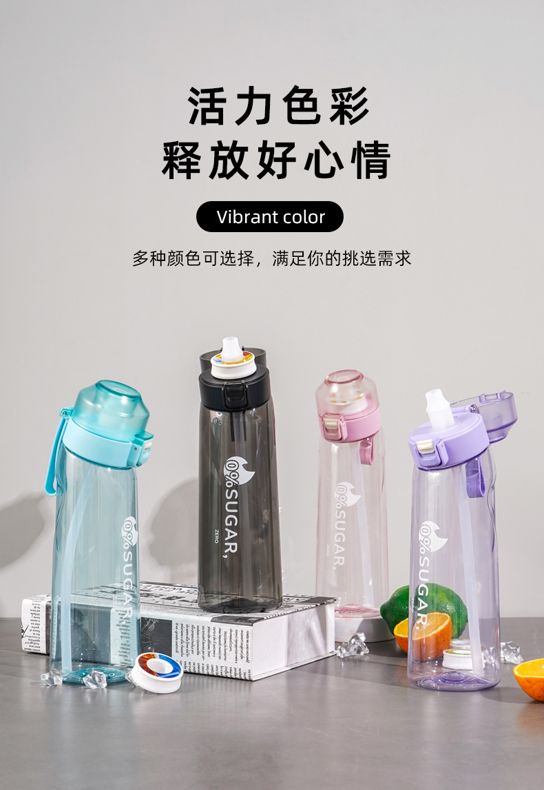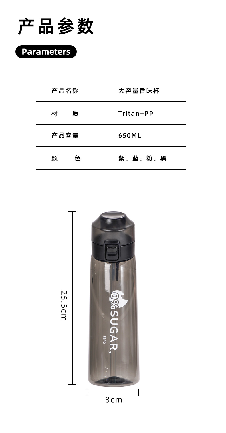 0 설탕 0 과일 맛 링이있는 카드 맛 컵 650mltritan 재료 물병 스포츠 컵 마시는 유물