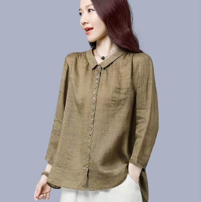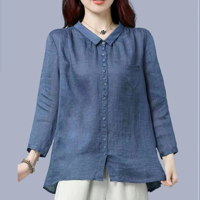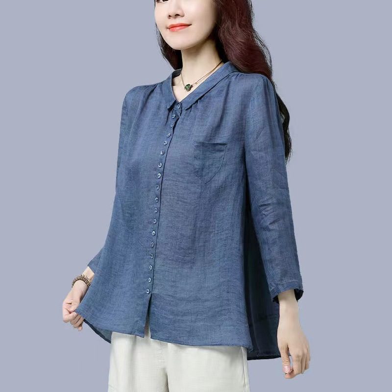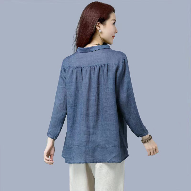 면 및 린넨 셔츠 여성용 2023 봄 가을 새로운 루즈한 슬리밍 웨스턴 스타일 여성용 루즈한 모든 매치 탑 셔츠