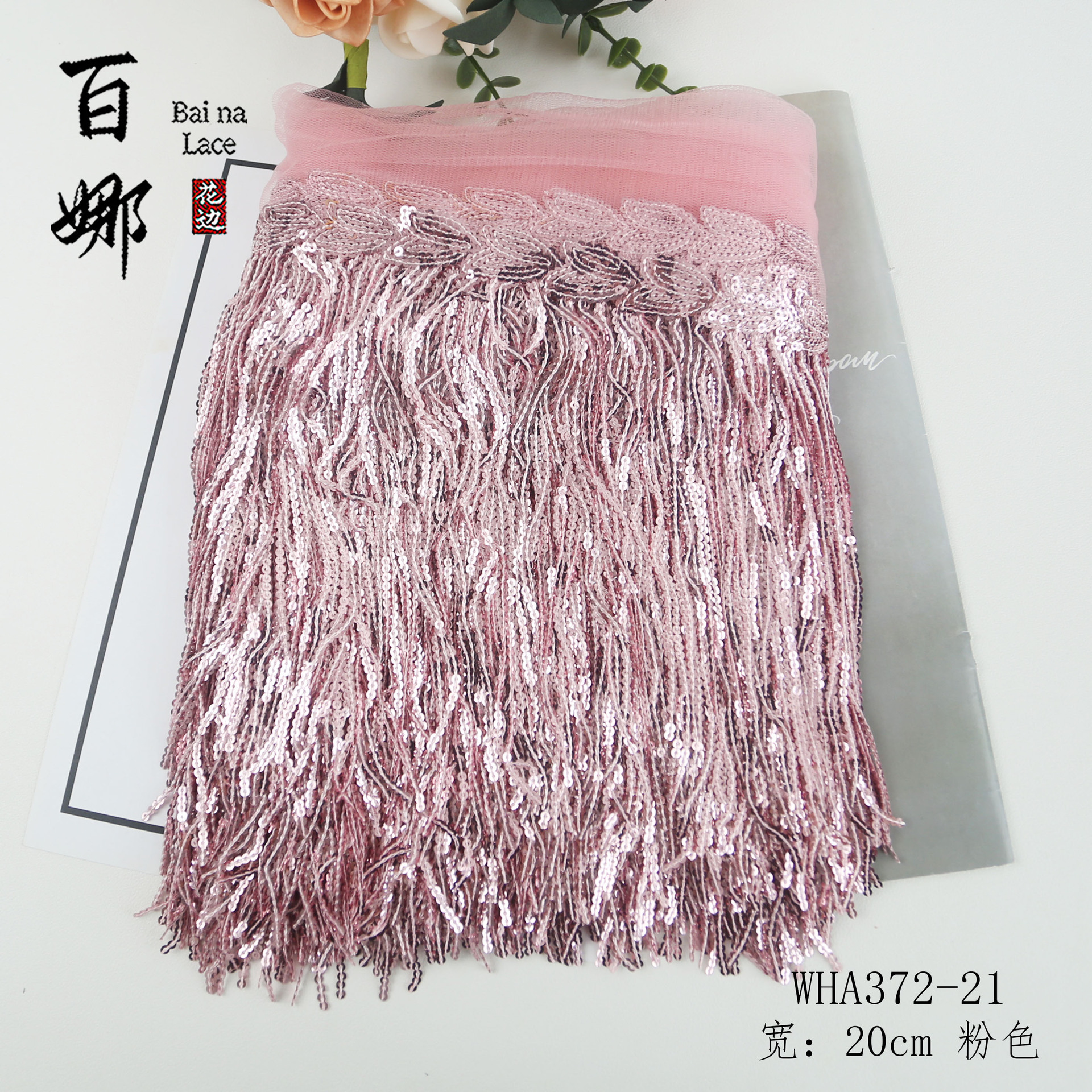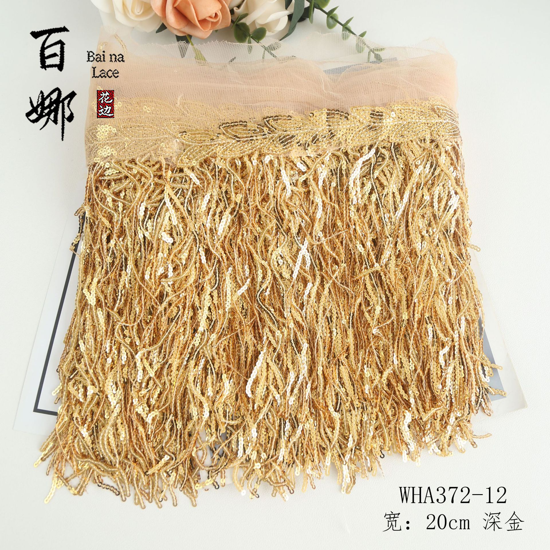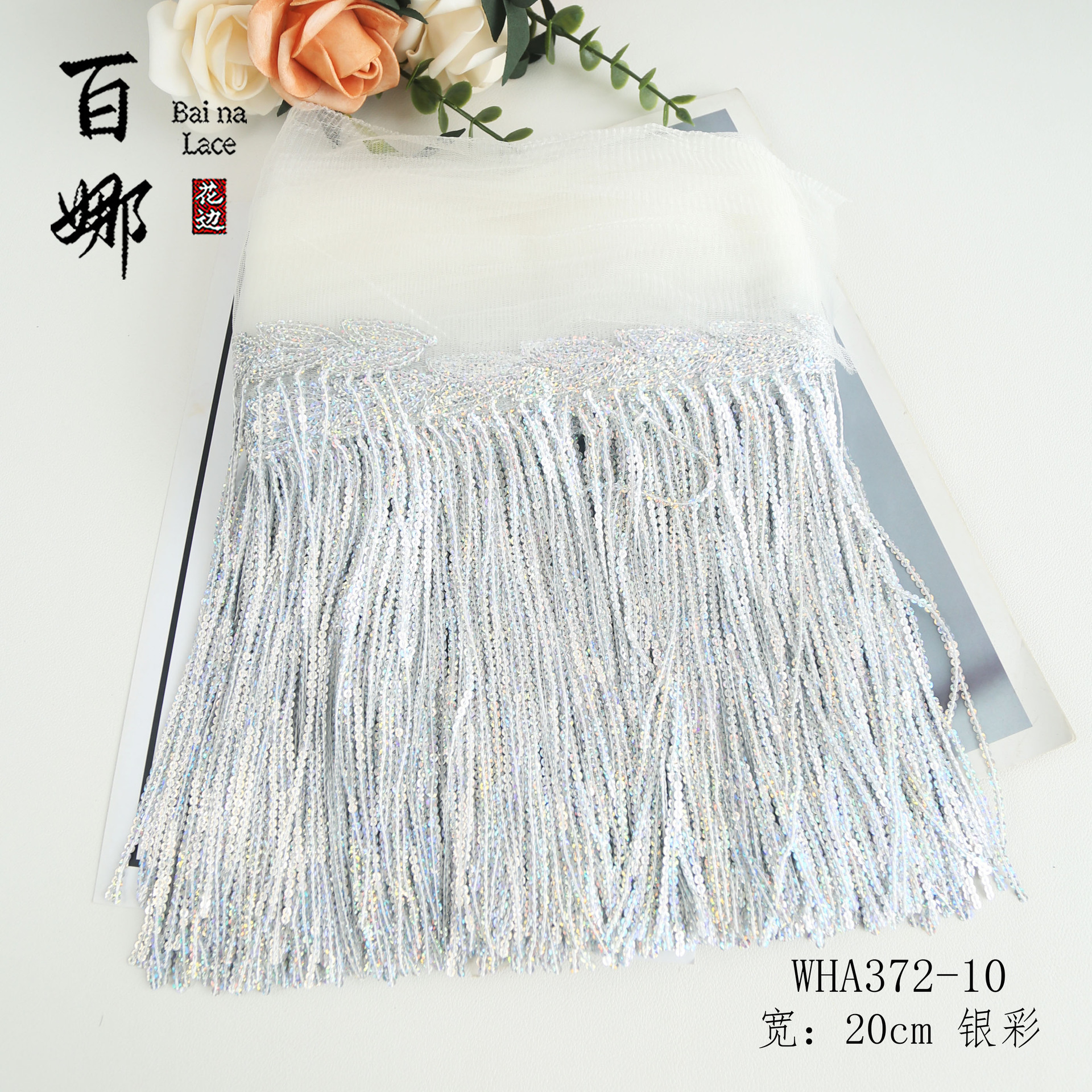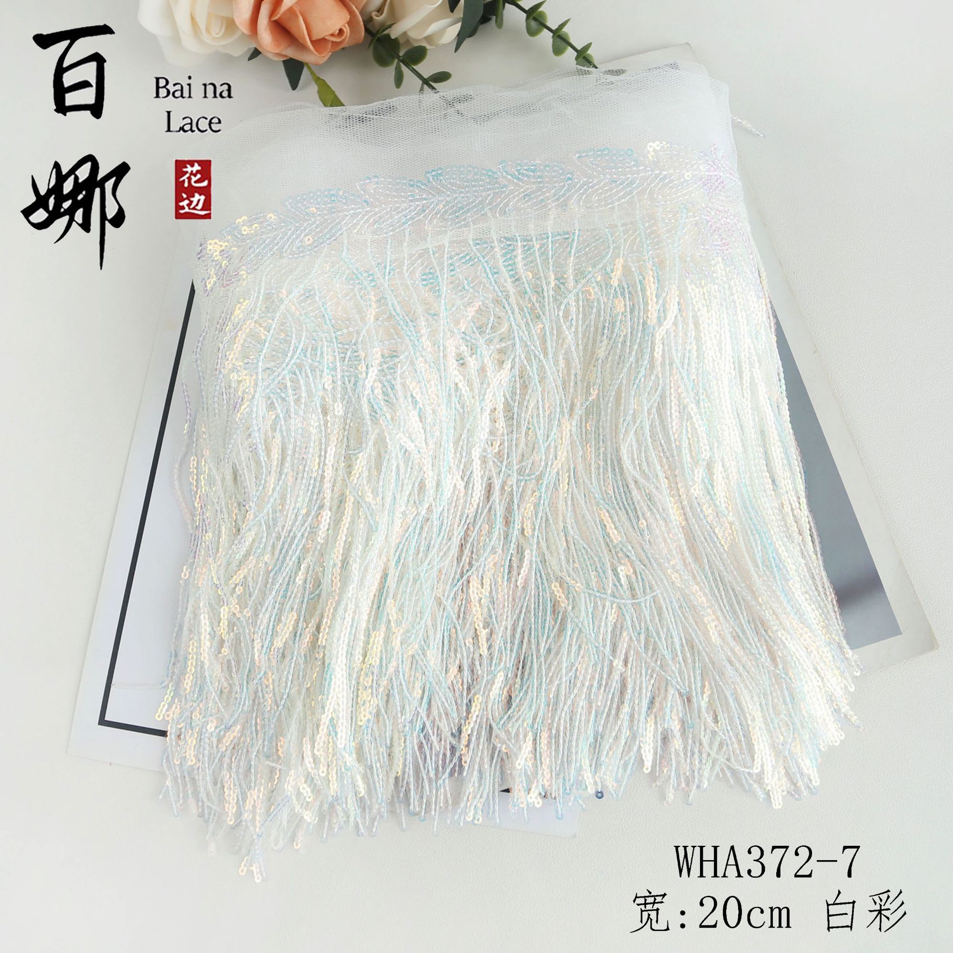 • 20cm*표백*스팽글 태슬 레이스 10야드/롤