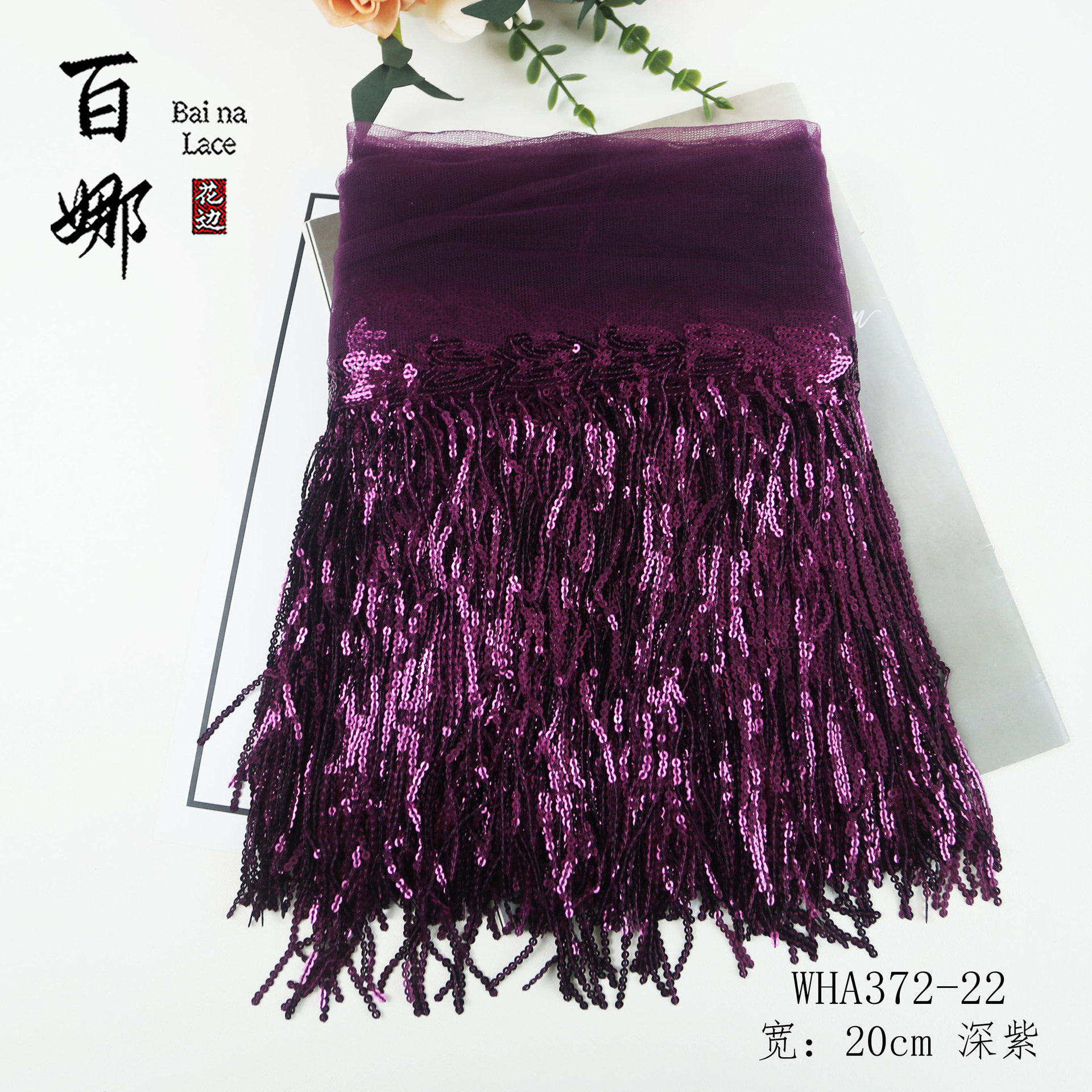 • 20cm*딥 퍼플*스팽글 태슬 레이스 10야드/롤