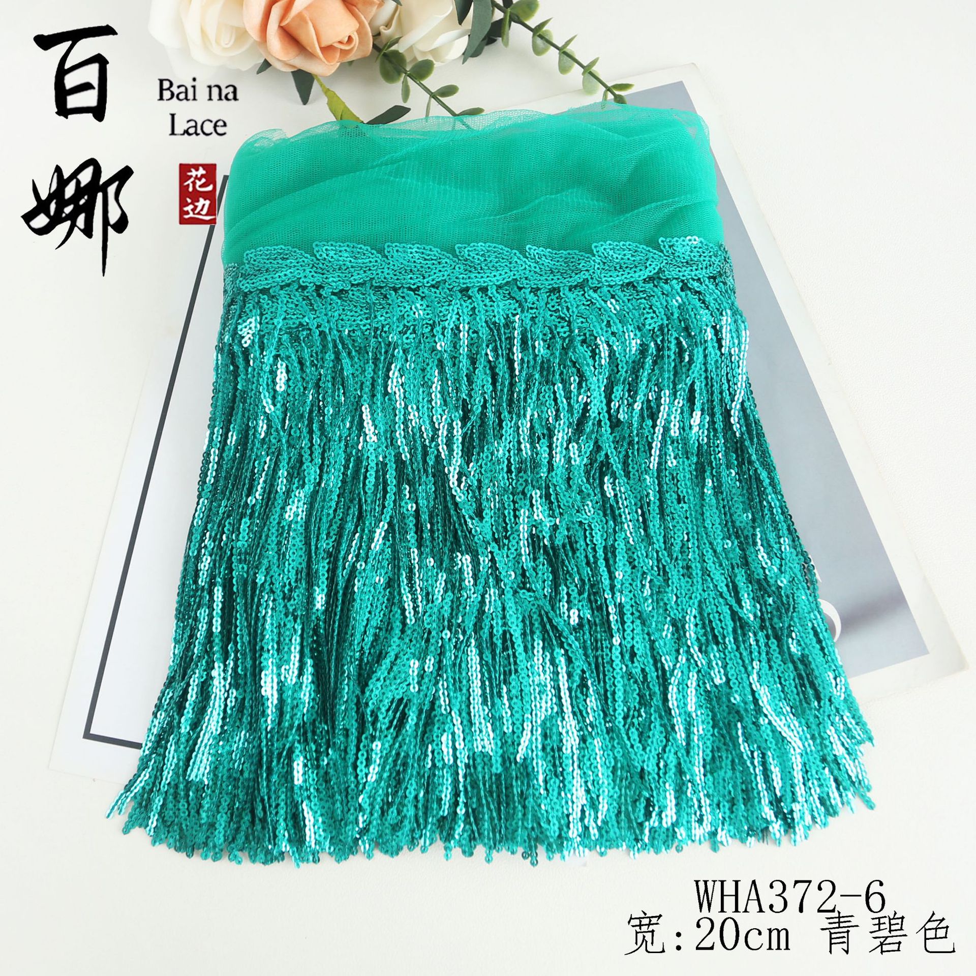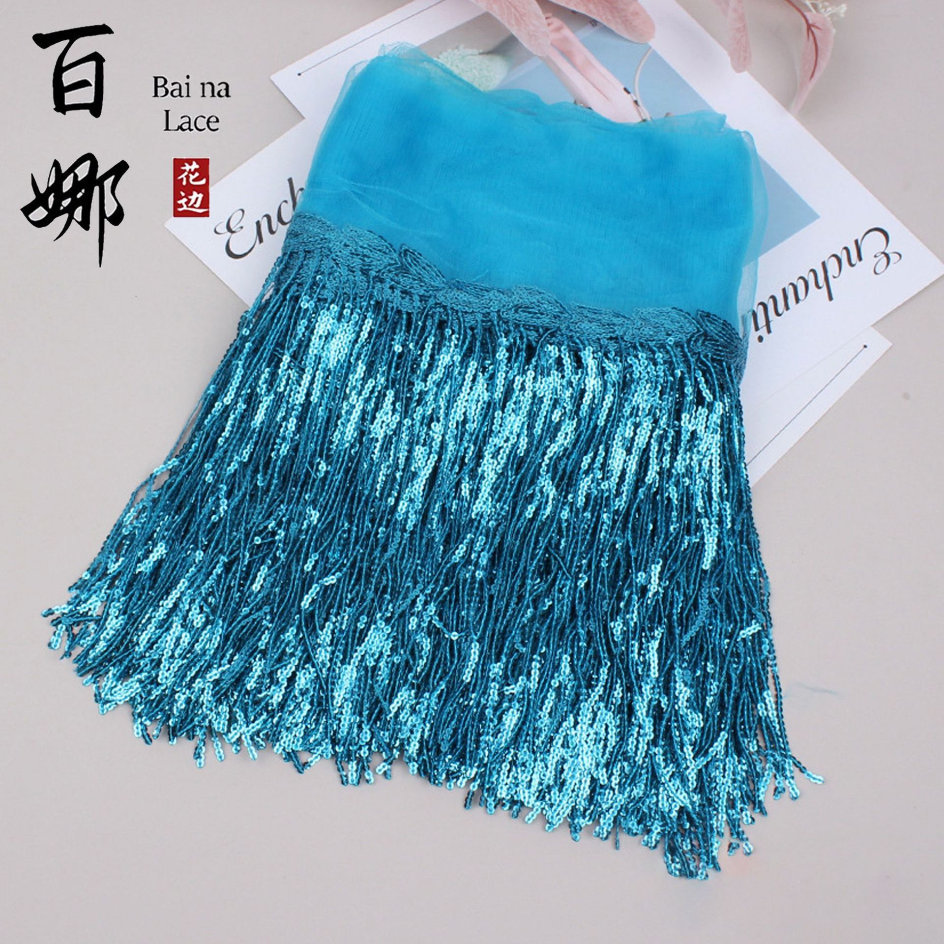 • 20cm*블루 그린*스팽글 태슬 레이스 10야드/롤