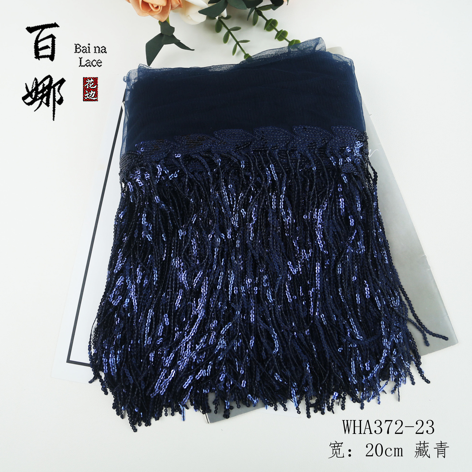 • 20cm*네이비 블루*스팽글 태슬 레이스 10야드/롤