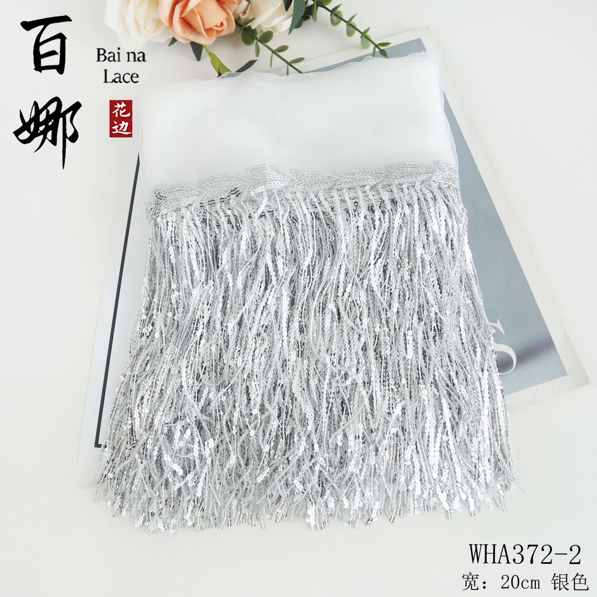 • 20cm 은색 글리터 태슬 레이스, 10마/롤
