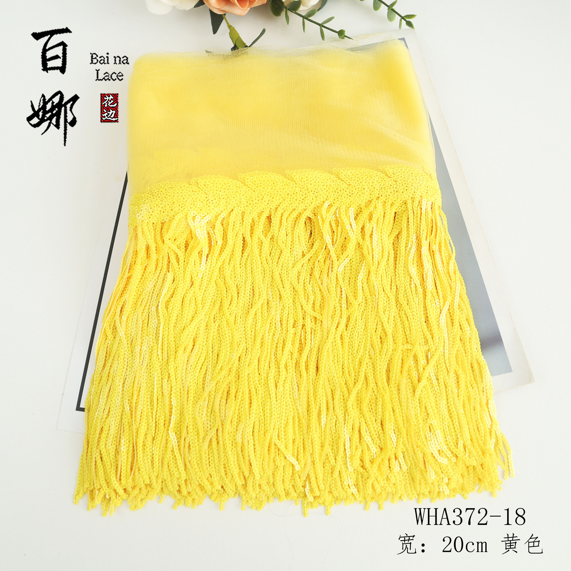 • 20cm*노란색 화려한*스팽글 술 레이스 10야드/롤
