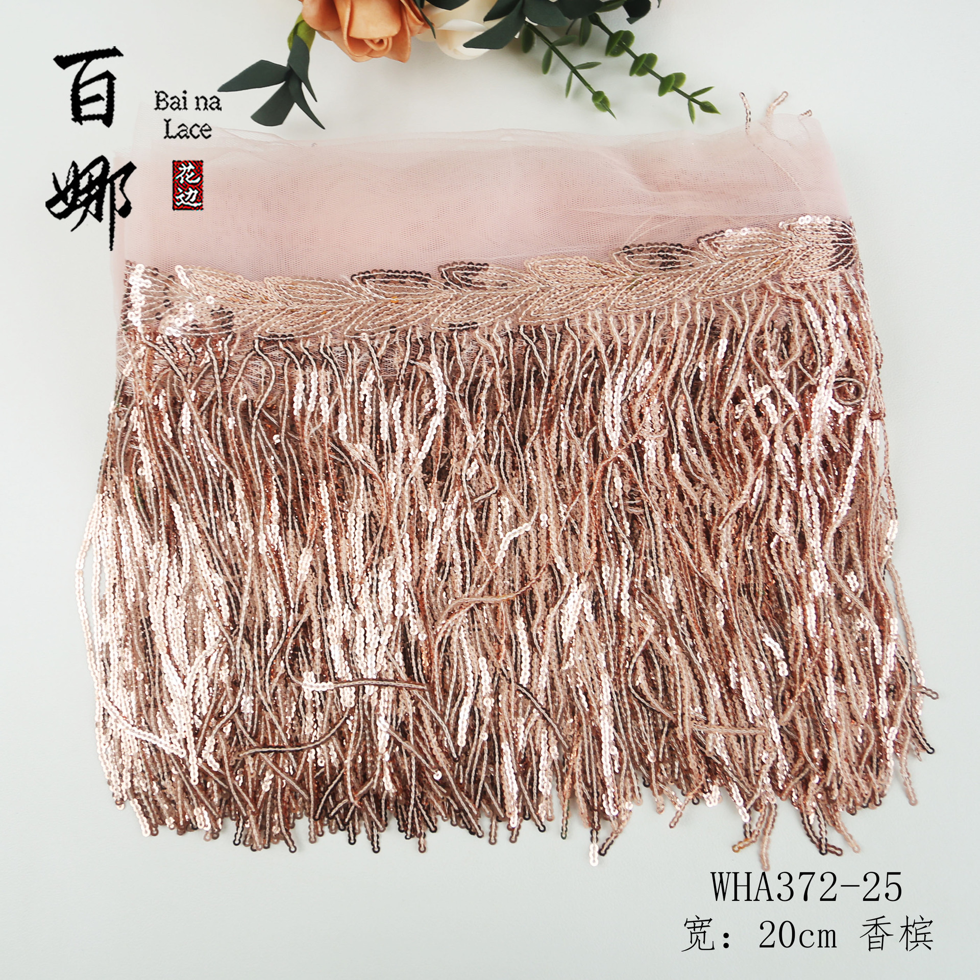 • 20cm 샴페인 글리터 태슬 레이스 10마/롤