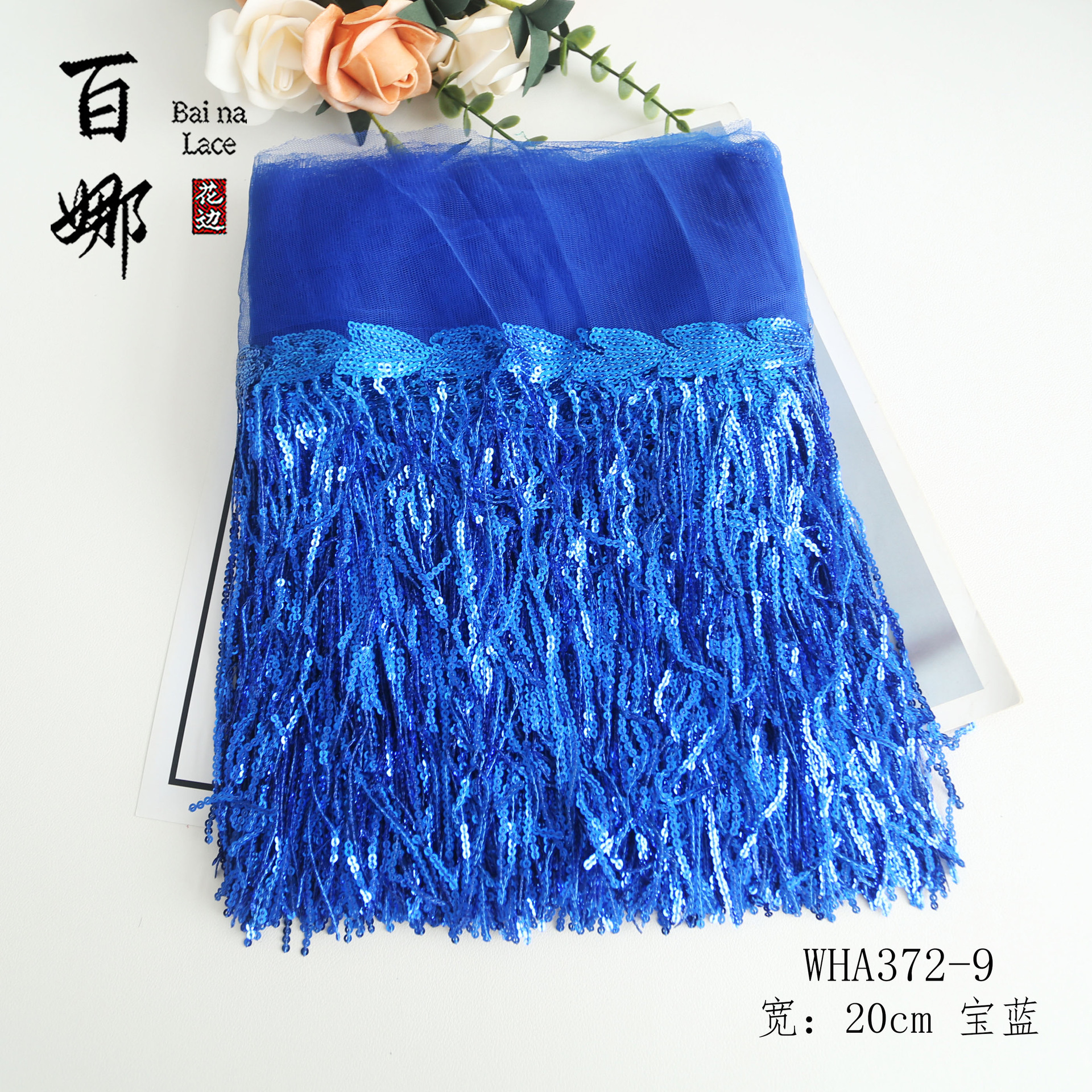 • 20cm*사파이어 블루*스팽글 태슬 레이스 10야드/롤