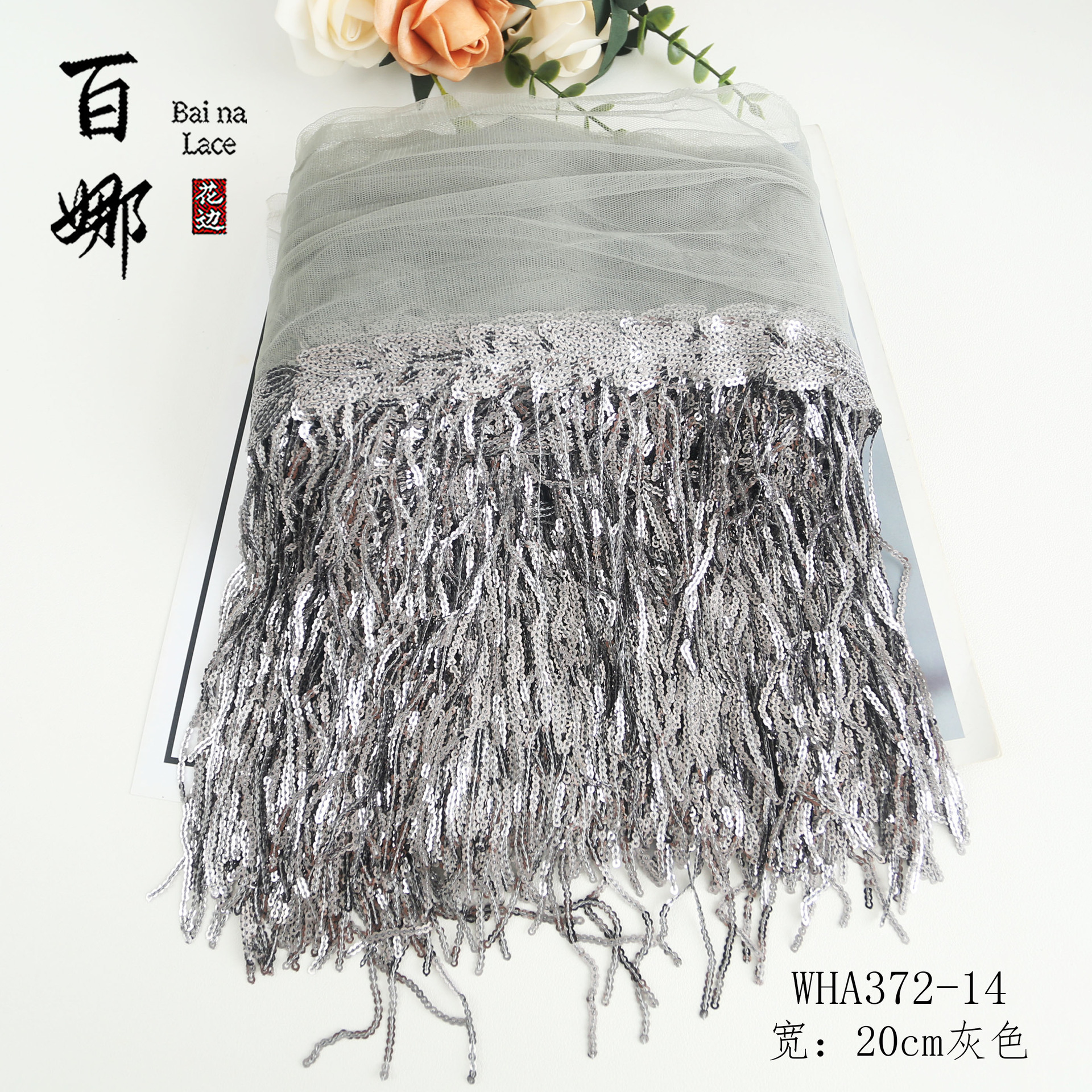 • 20cm*회색*스팽글 태슬 레이스 10야드/롤