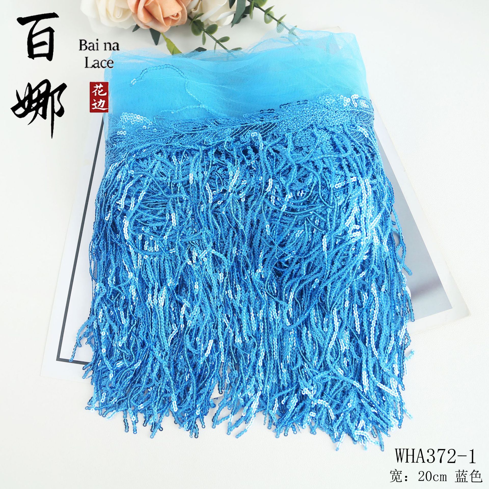 • 20cm*하늘색*스팽글 태슬 레이스 10야드/롤