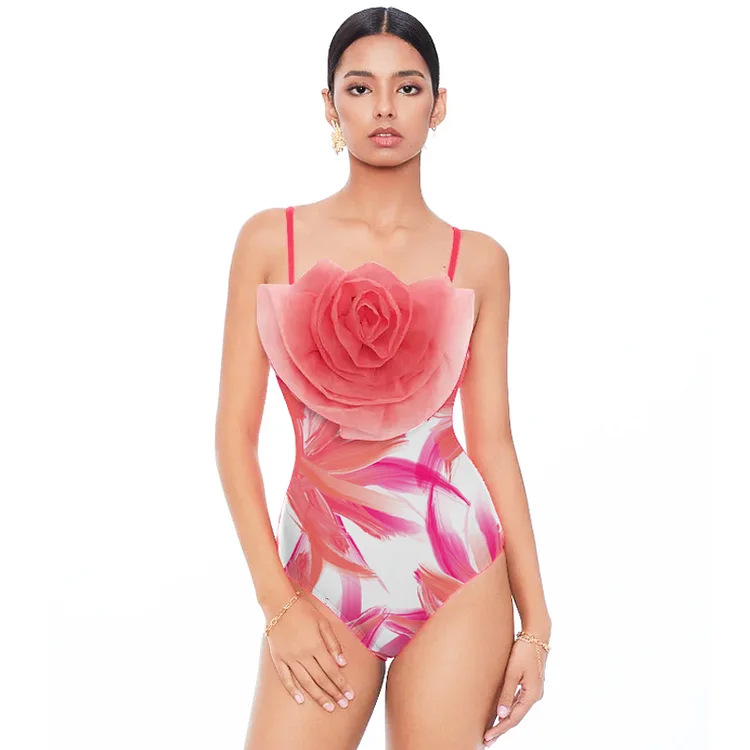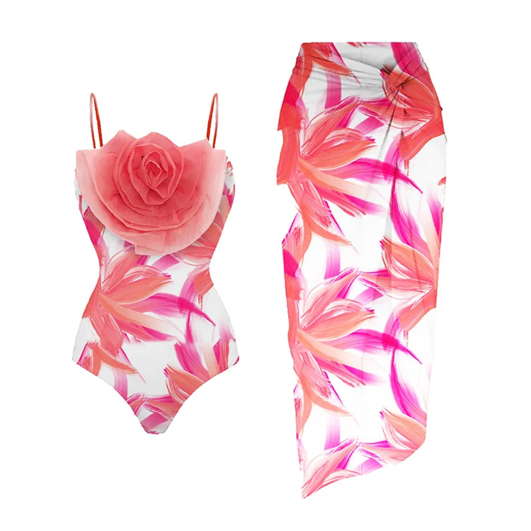 2023 아마존 AliExpress 유럽과 미국의 새로운 입체 꽃 원피스 수영복 여성 온천 휴가 해변 원피스 세트