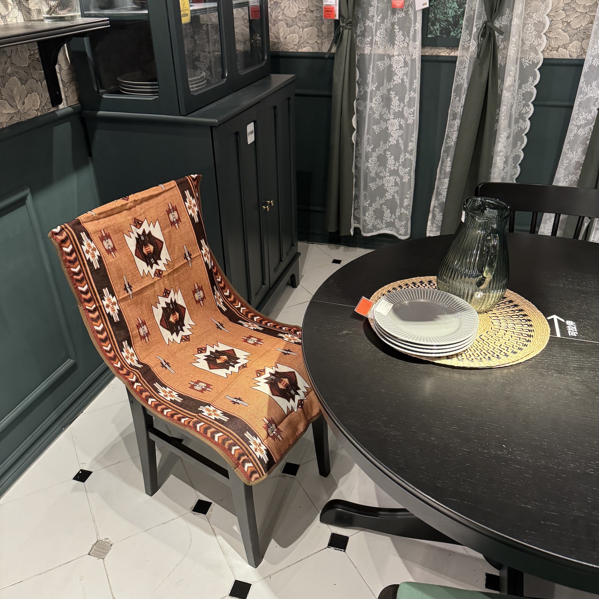 • 흑백 체크무늬 의자 커버