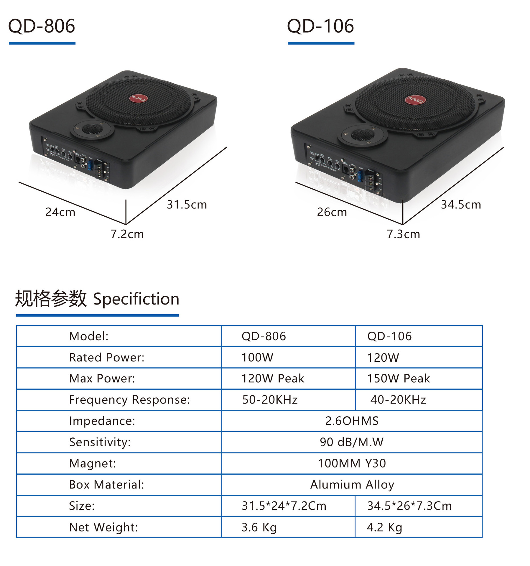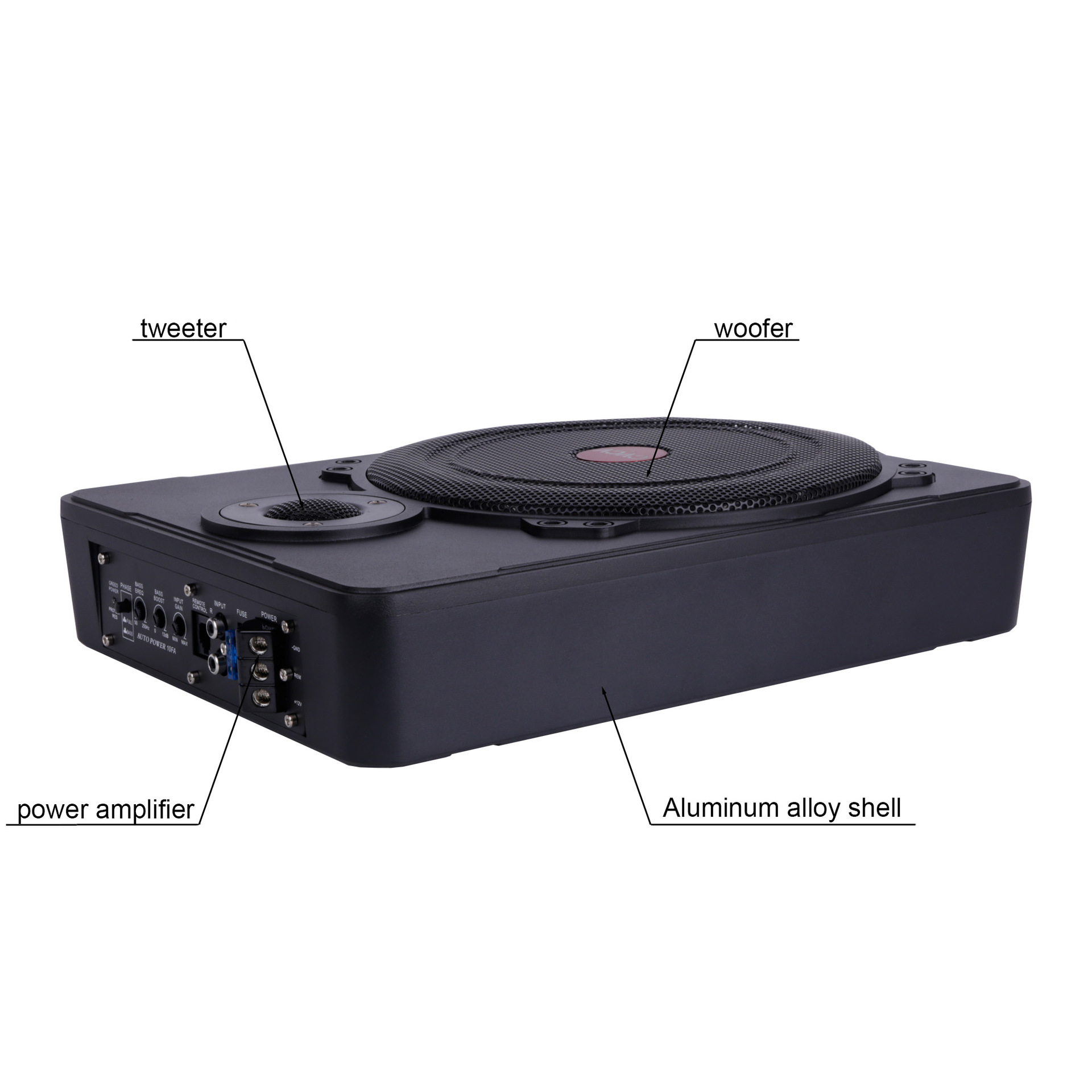 크로스 보더 10 인치 스퀘어 카 오디오 고출력 파워 앰프 액티브 스피커 소형 스틸 캐논 홈 카 서브 우퍼