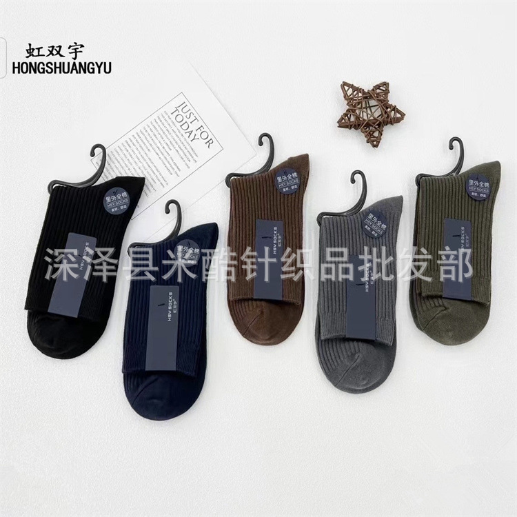홍쌍위 남성용 가을 겨울 이중 바늘 두꺼운 중목 양말 캐주얼 단색 스트라이프 비즈니스 양말 도매 공급