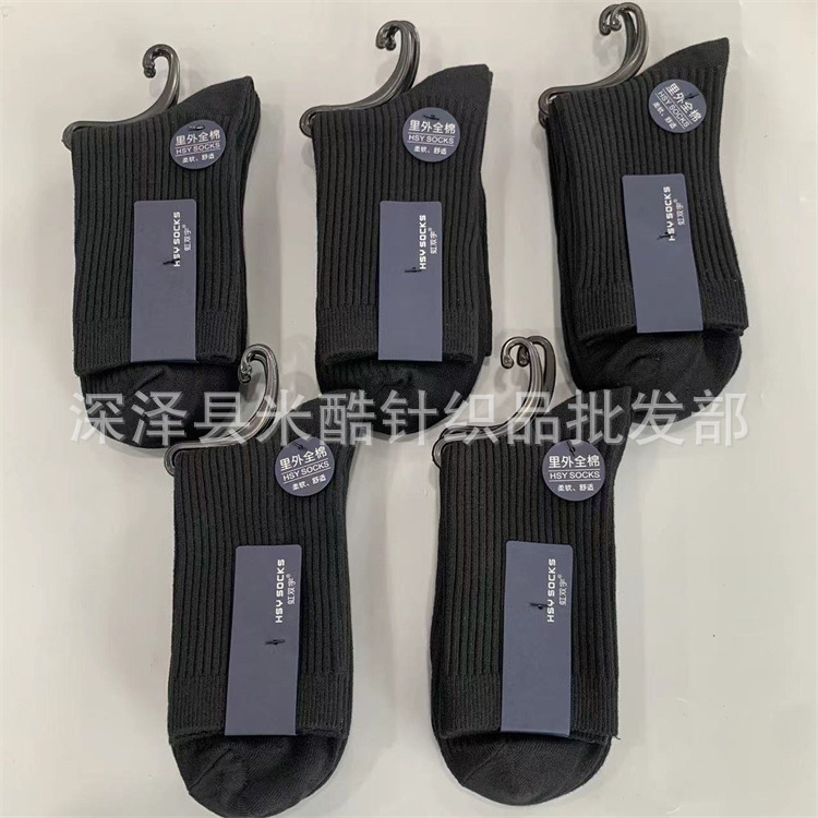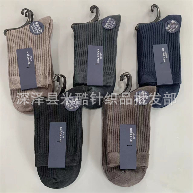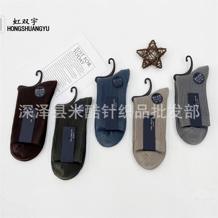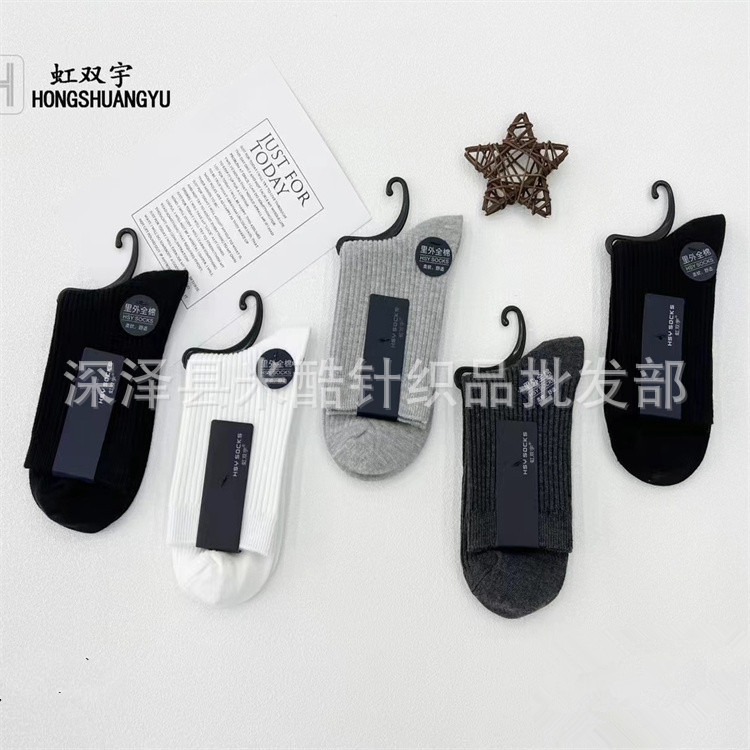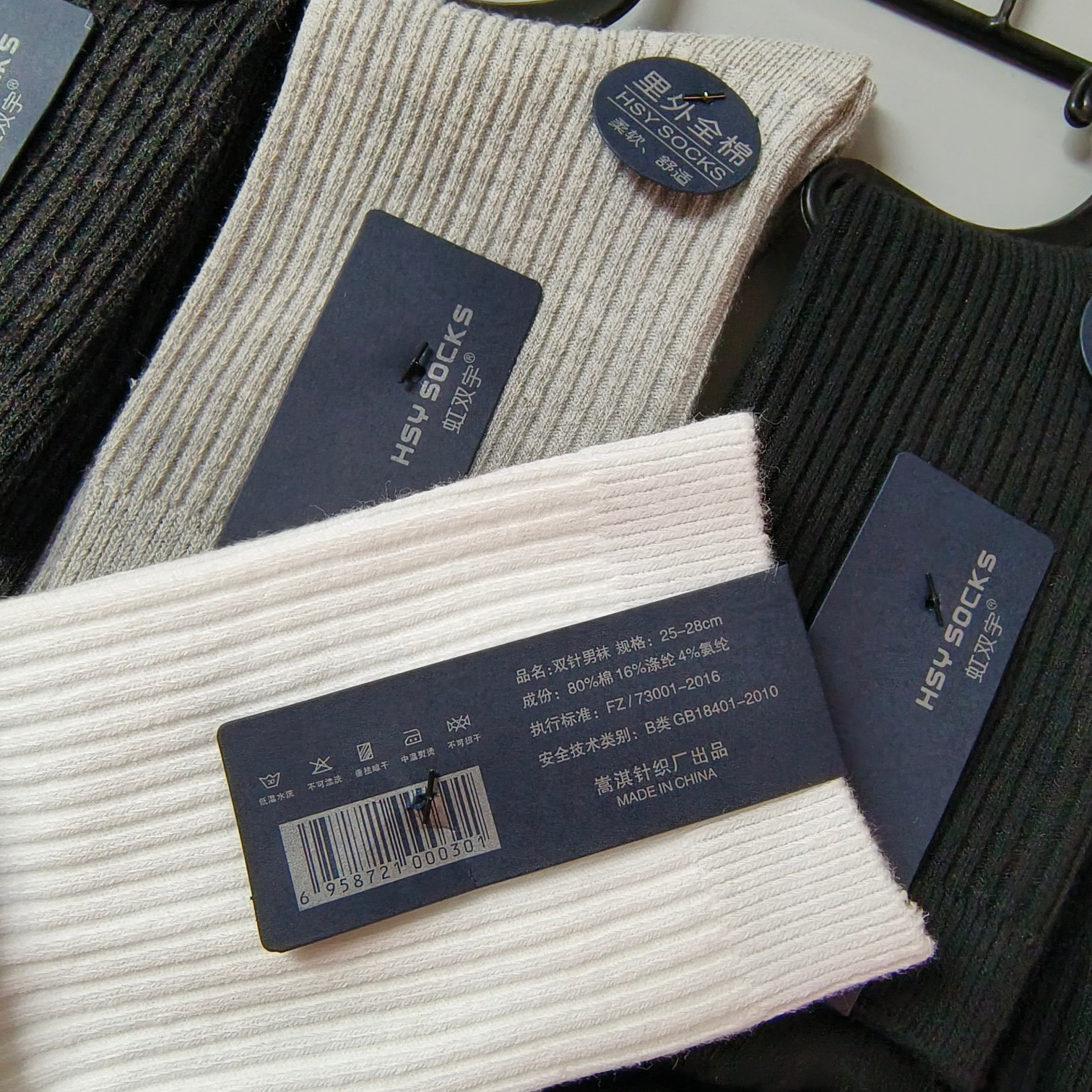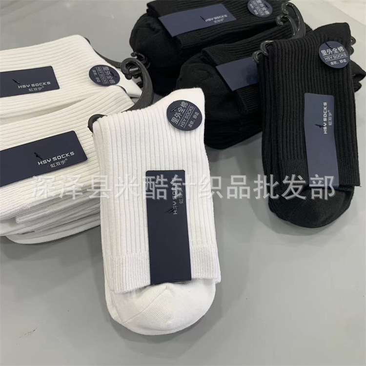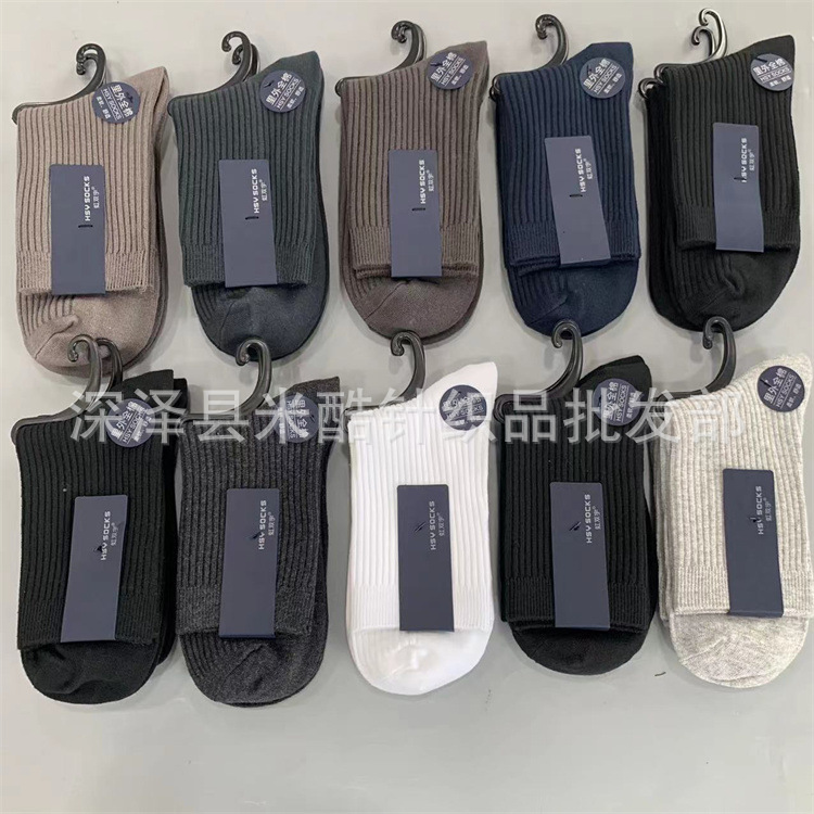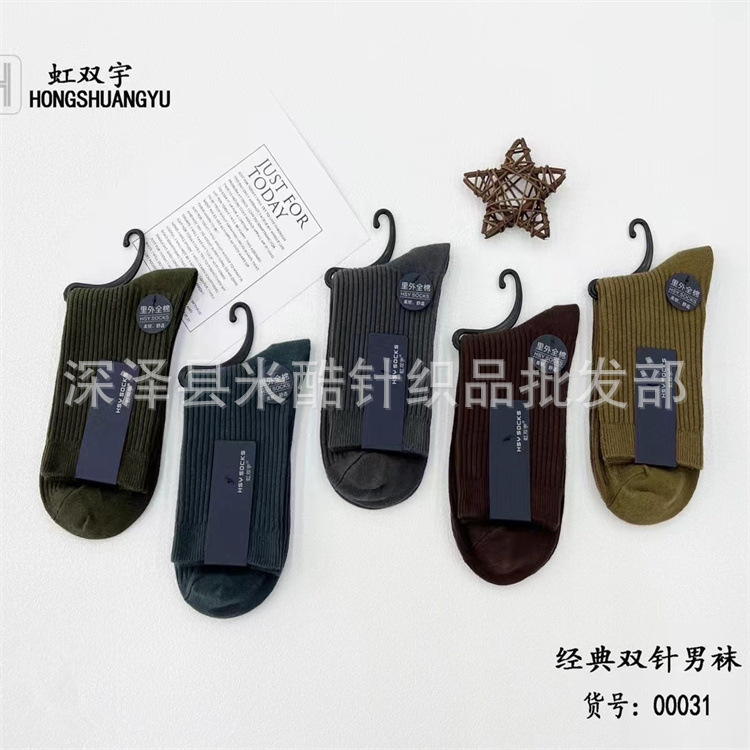 홍쌍위 남성용 가을 겨울 이중 바늘 두꺼운 중목 양말 캐주얼 단색 스트라이프 비즈니스 양말 도매 공급스토어 가기