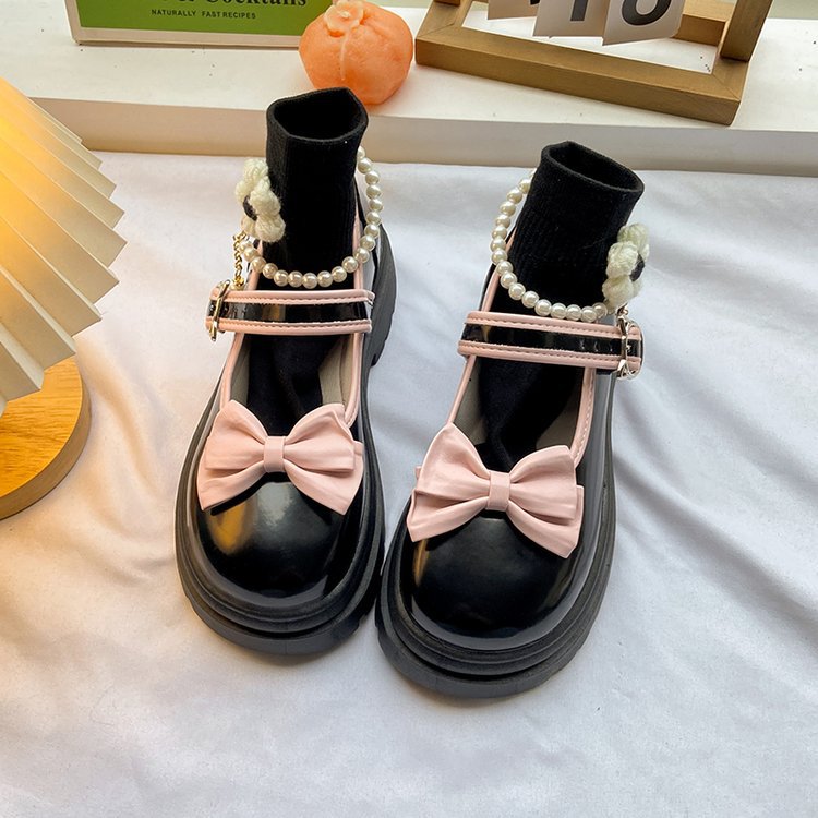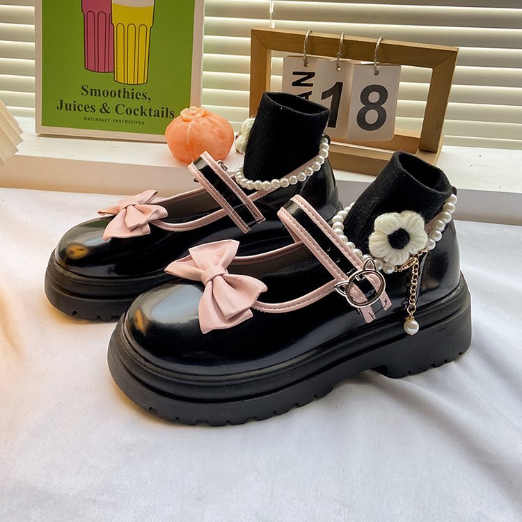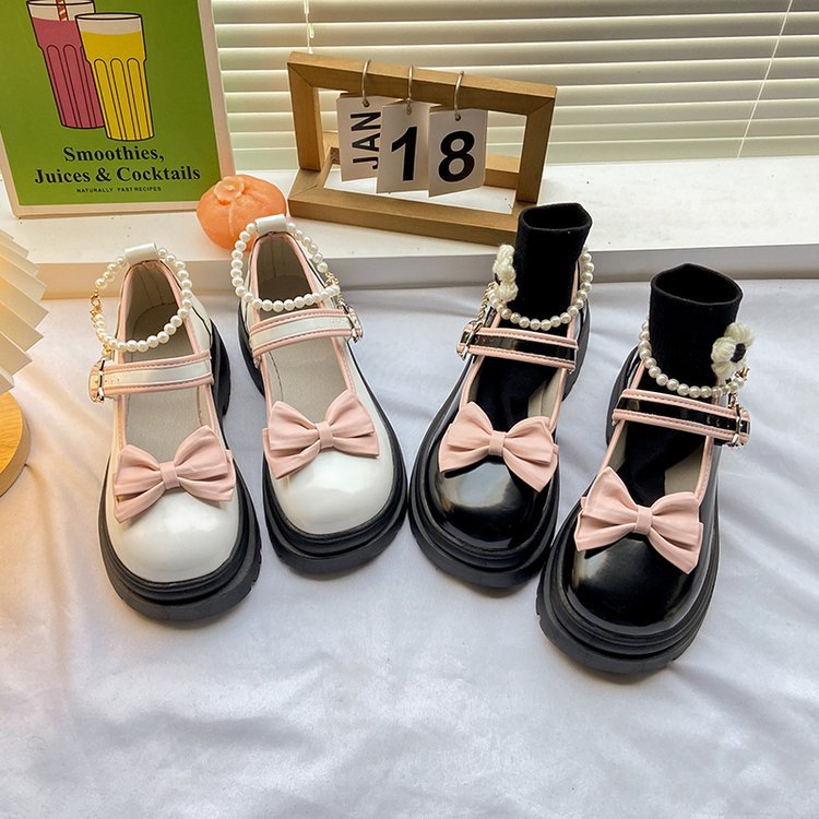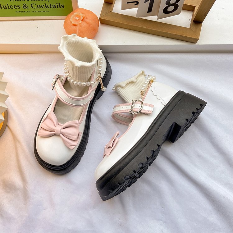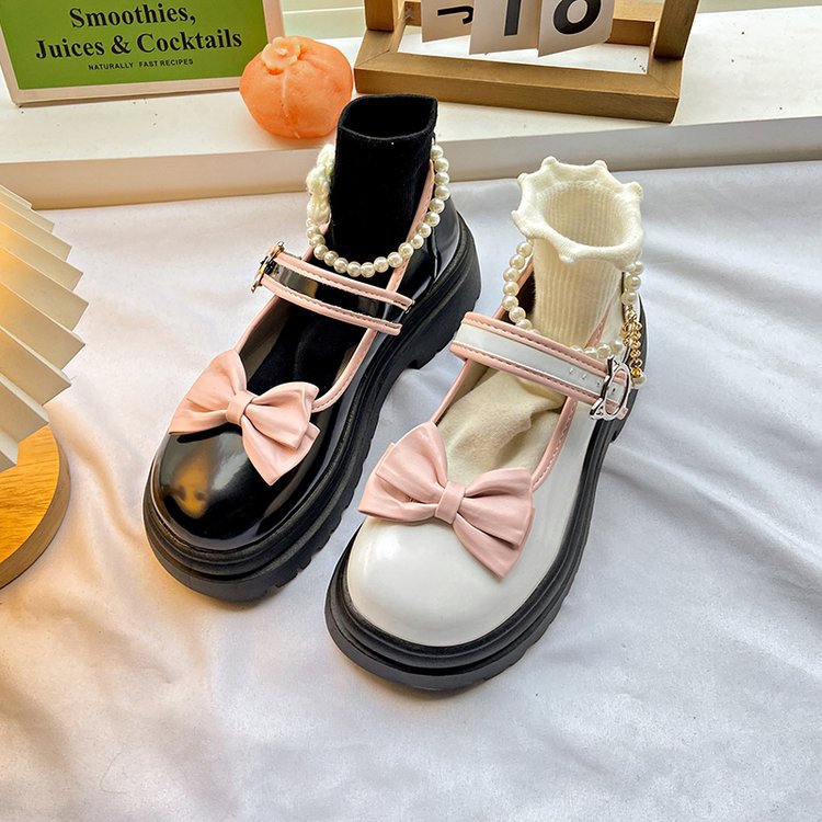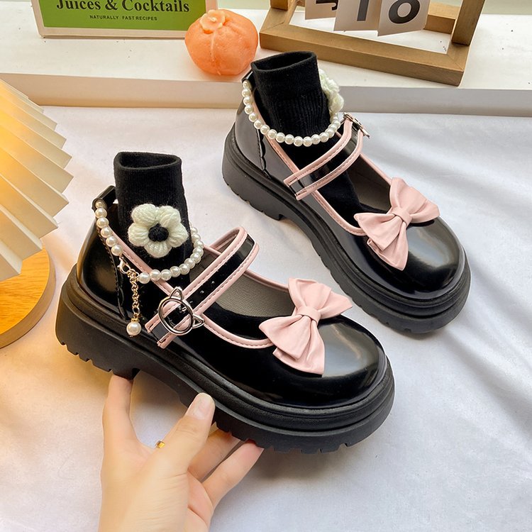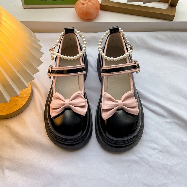 여성을위한 다목적 활 일본 두꺼운 밑창 작은 가죽 신발 2024 새로운 캐주얼 패션 라운드 발가락 얕은 입 메리 제인 신발스토어 가기