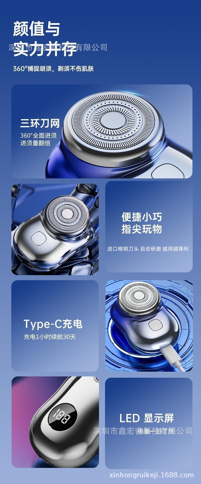 휴대용 면도기 미니 전기 면도기 타입-C 고속 충전 대기 시간 30일 삼중날 면도기스토어 가기
