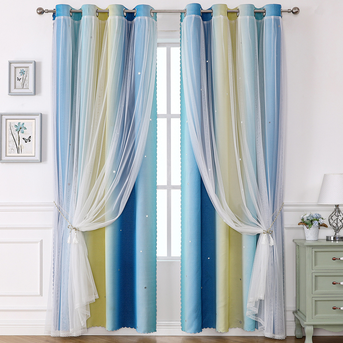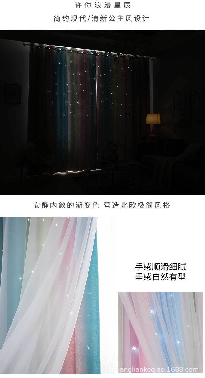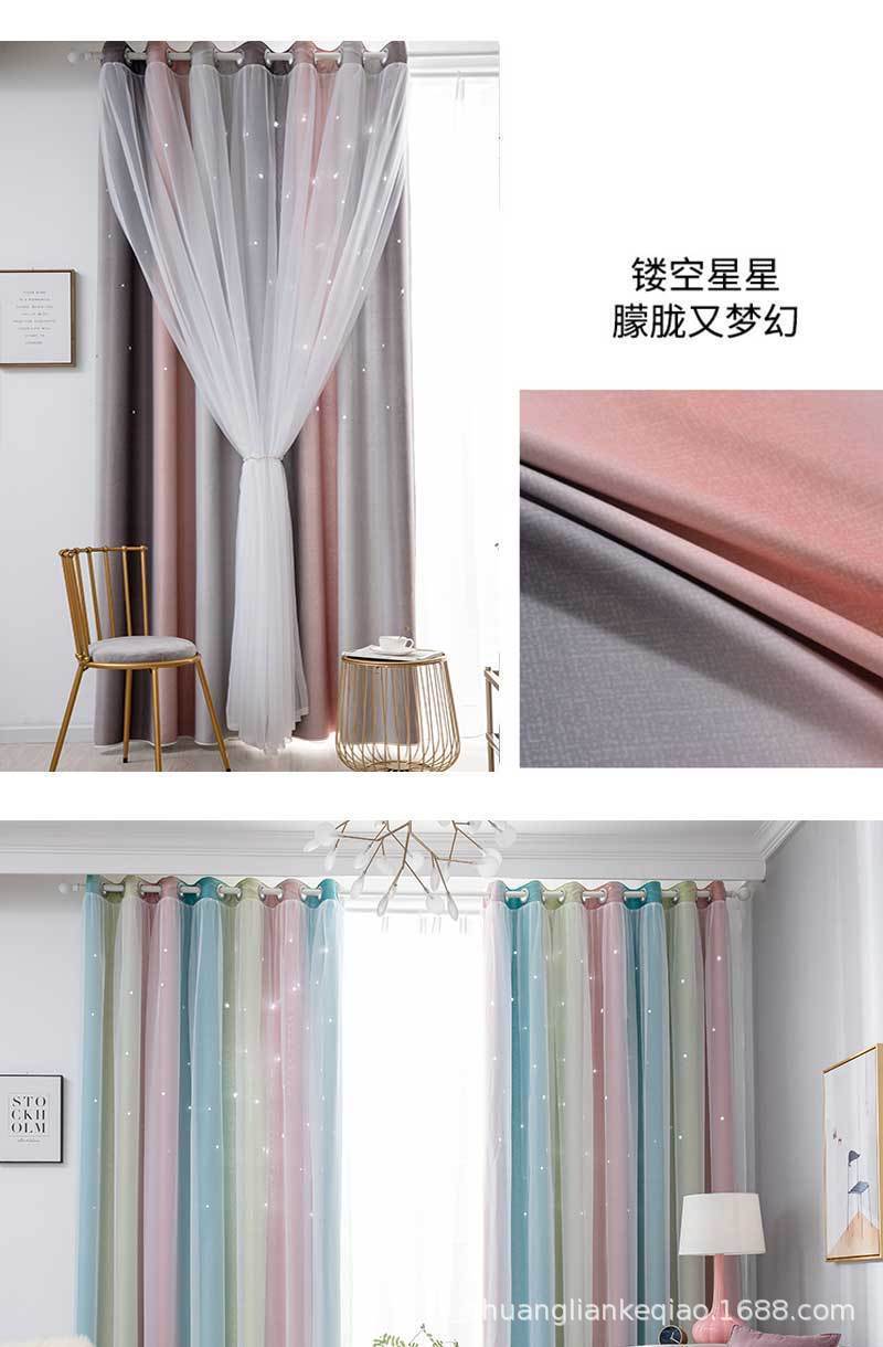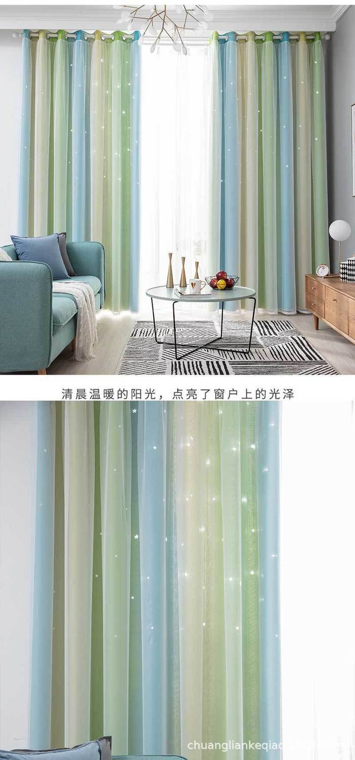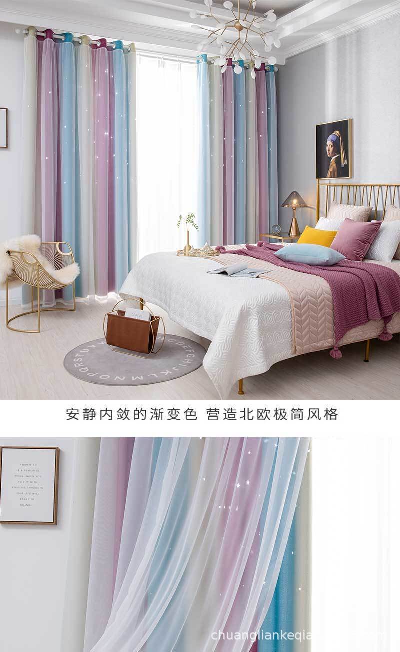 국경 간 대외 무역 Morandi 더블 레이어 커튼 아마존 무지개 그라디언트 스트라이프 마감 천 원사 통합 정전 커튼스토어 가기