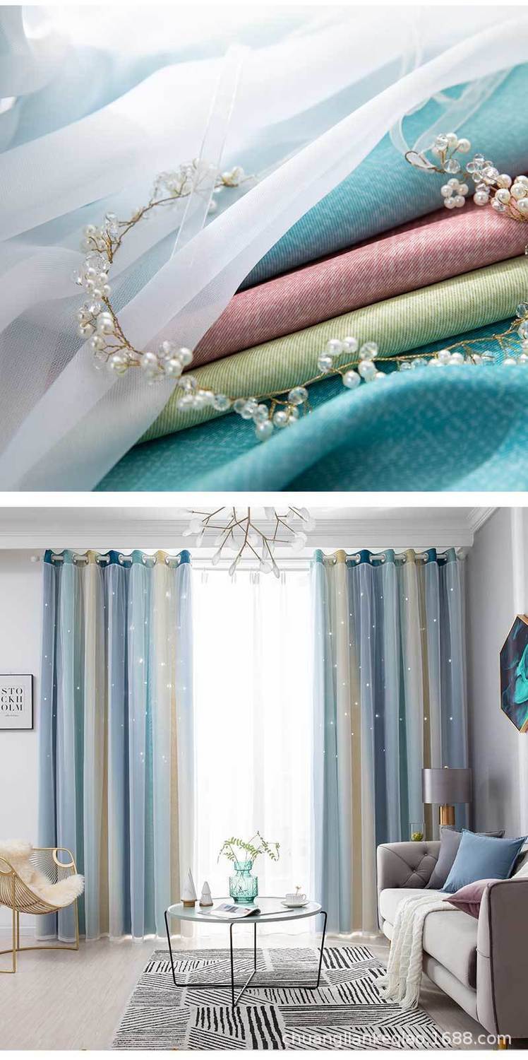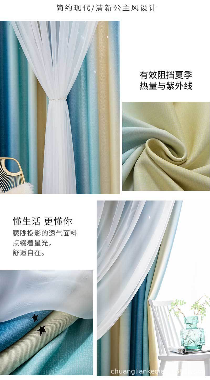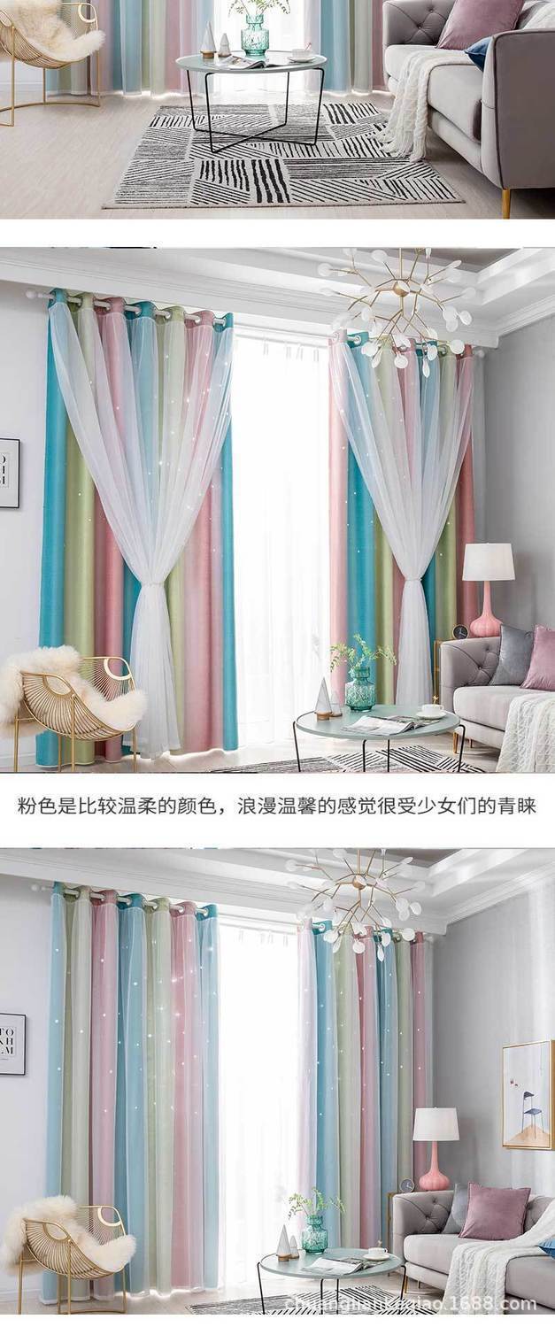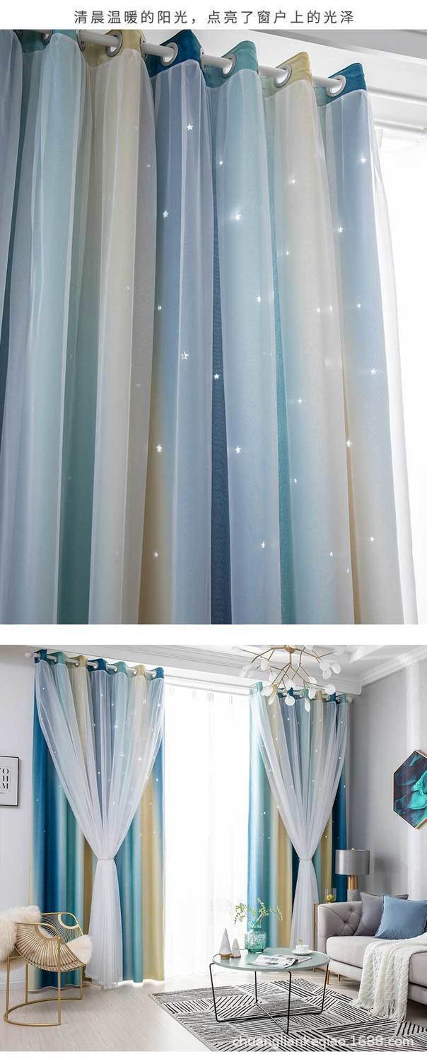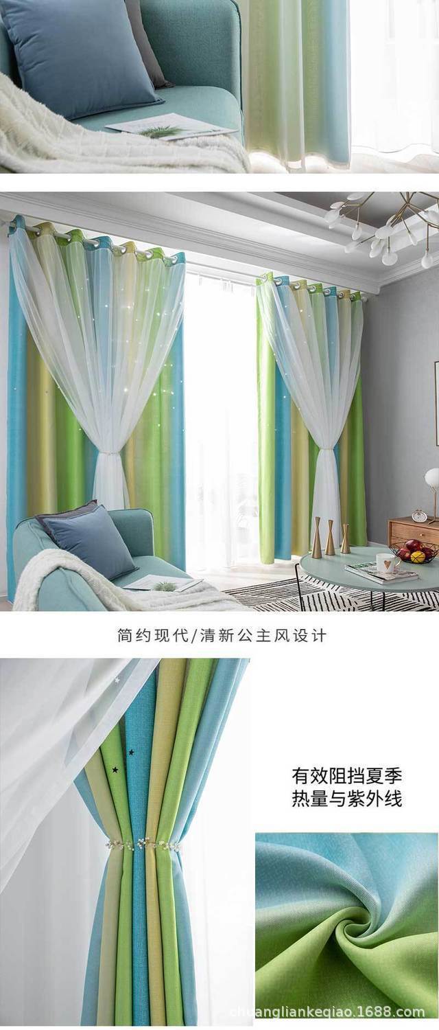 국경 간 대외 무역 Morandi 더블 레이어 커튼 아마존 무지개 그라디언트 스트라이프 마감 천 원사 통합 정전 커튼스토어 가기