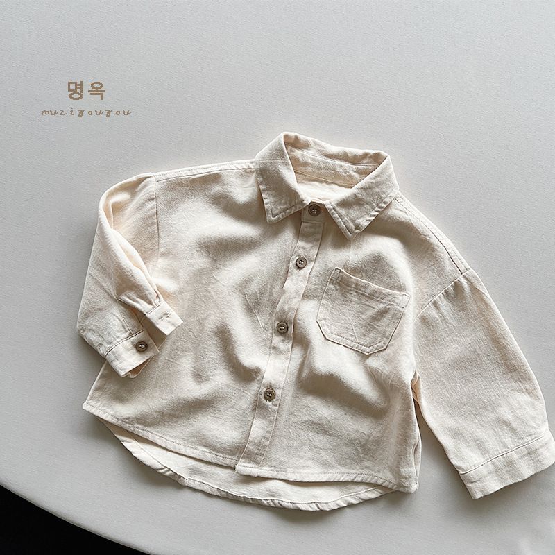 부드러운 한국 소년과 소녀 단색 긴 소매 셔츠 가을 2023 에 대 한 어린이 옷깃 다목적 서양 스타일 셔츠스토어 가기