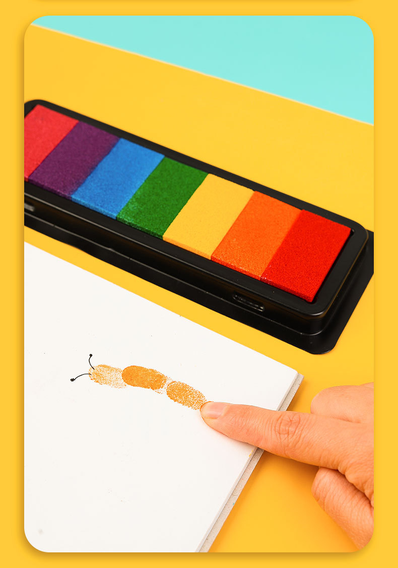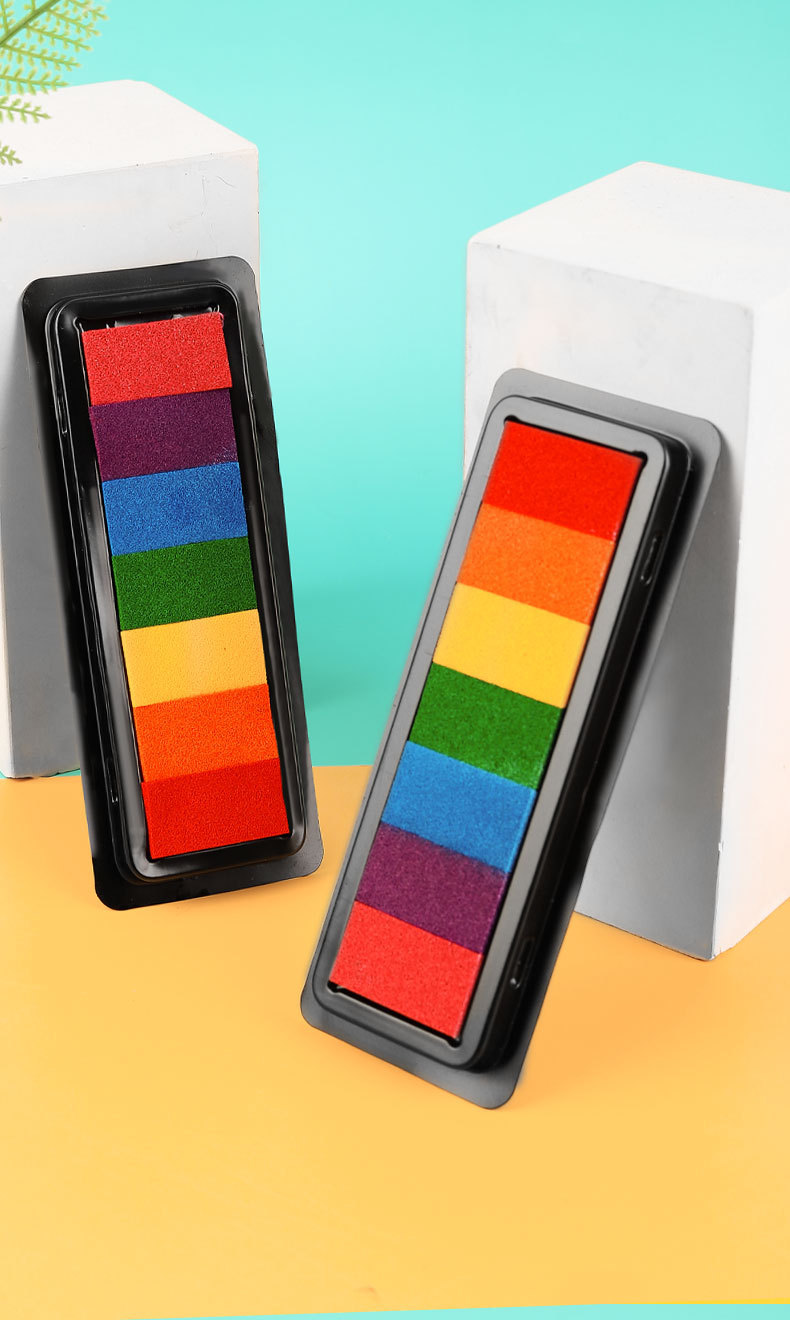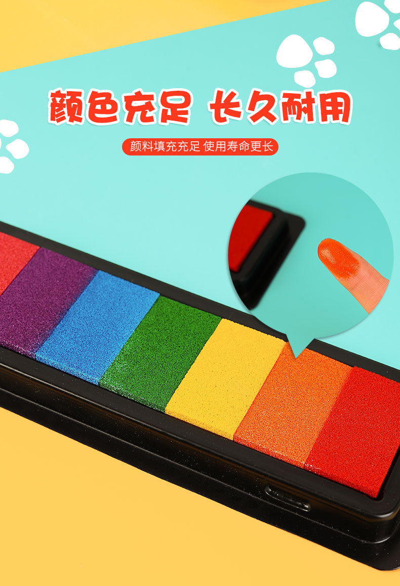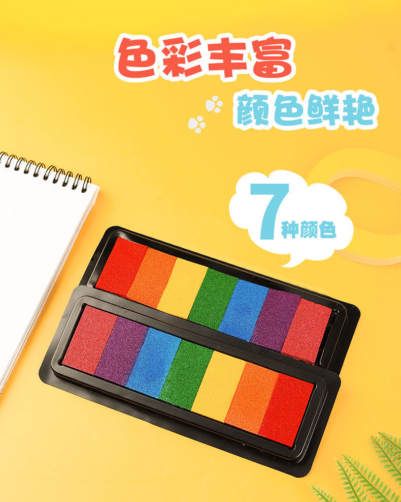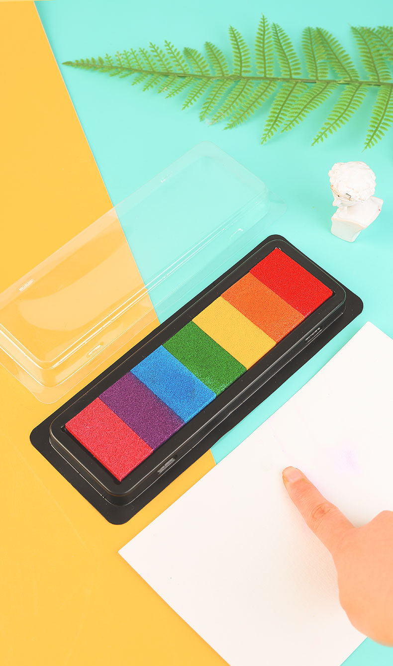 컬러 잉크 패드 DIY 고무 스탬프 7 색 인쇄 테이블 어린이 손 지문 그림 손 계정 직사각형 씰 낙서스토어 가기