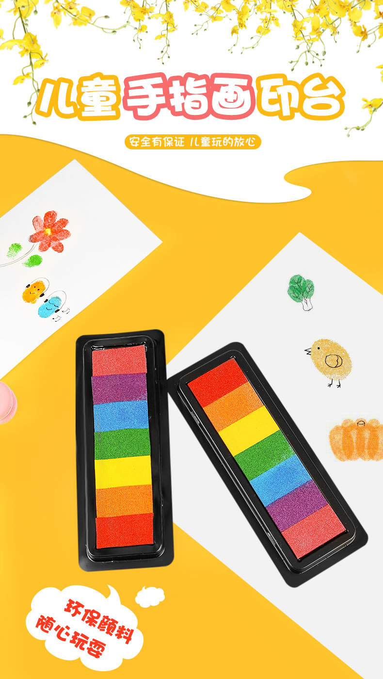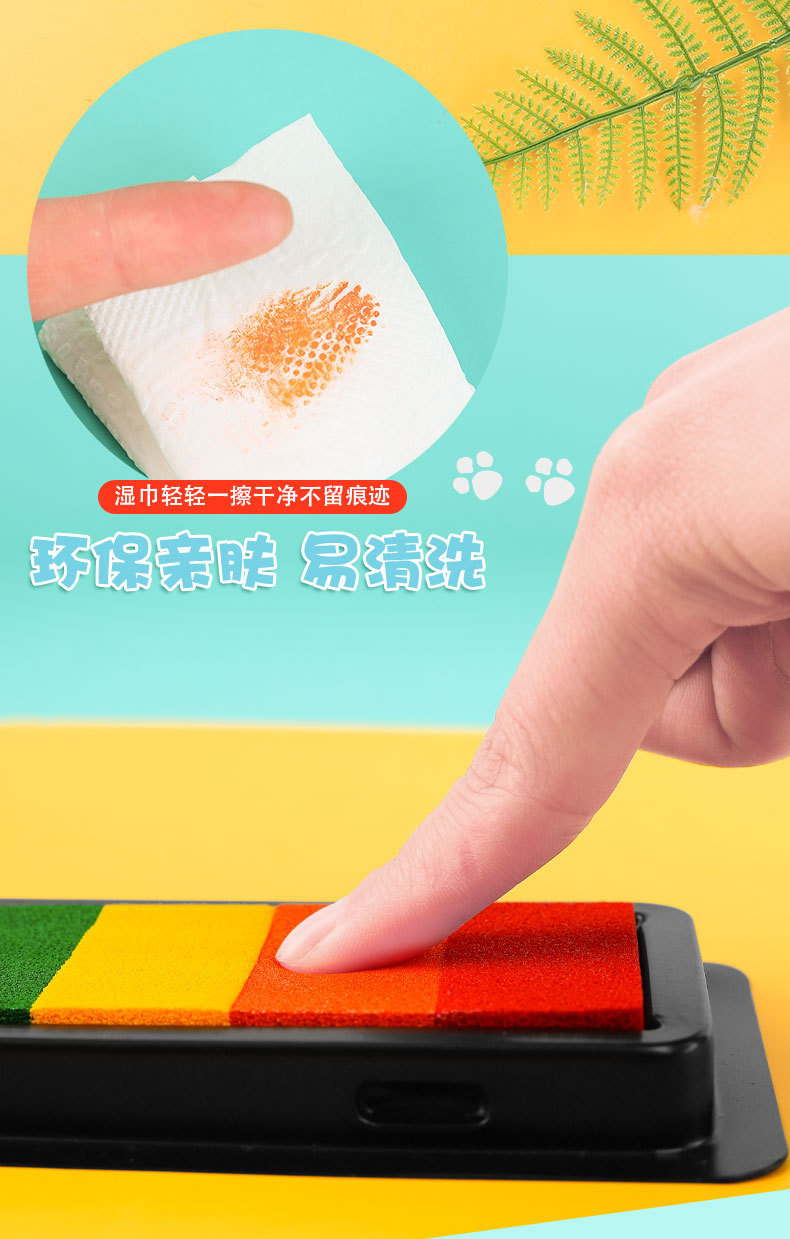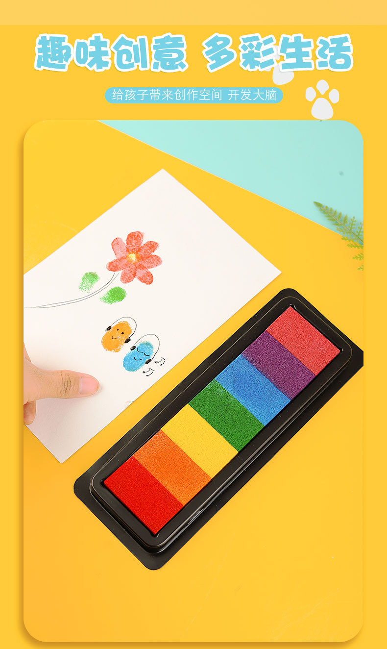 컬러 잉크 패드 DIY 고무 스탬프 7 색 인쇄 테이블 어린이 손 지문 그림 손 계정 직사각형 씰 낙서