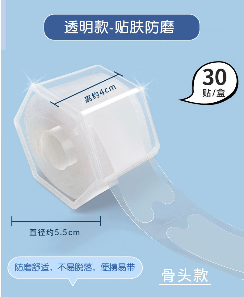• 힐스티커 30개 [육각박스] 뼈모양-PE투명