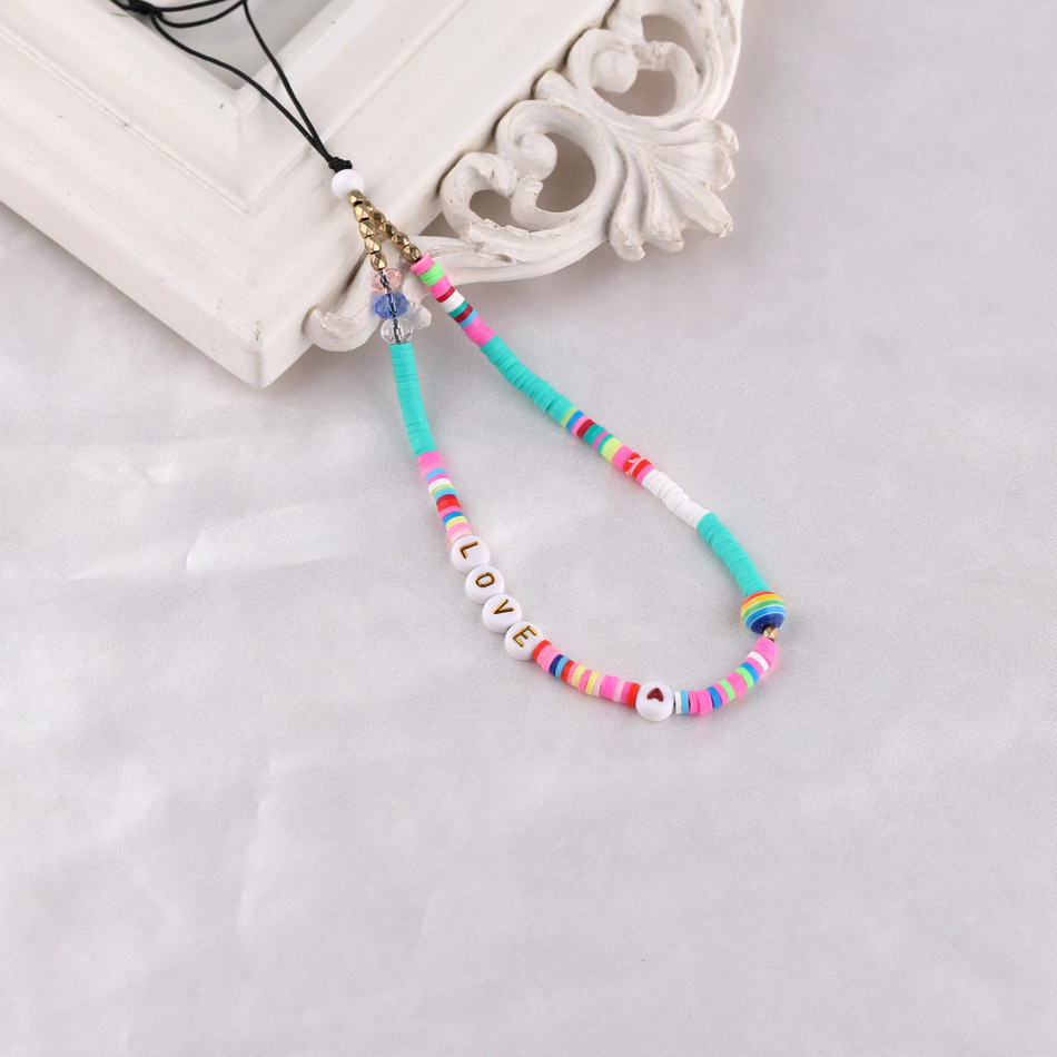 보헤미안 Y2K 소프트 도자기 인쇄 복고풍 사랑 페르시 휴대 전화 체인 교수형 보석 ccd 카메라 끈 구슬 체인