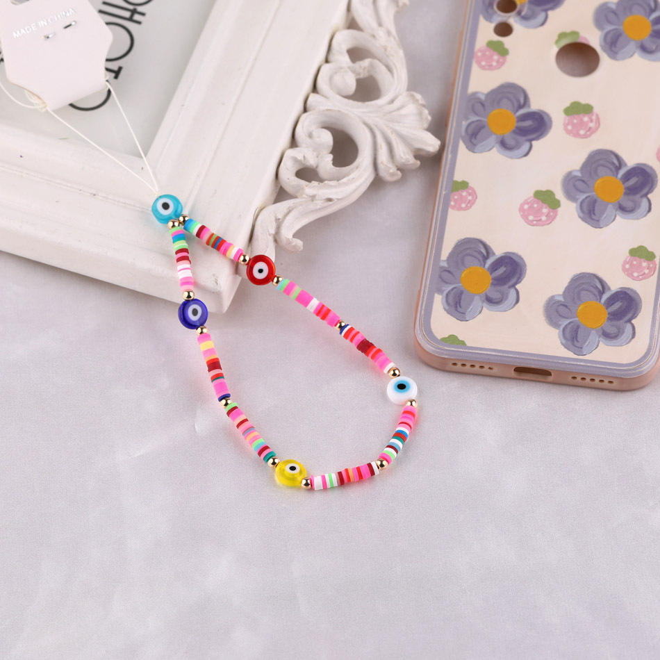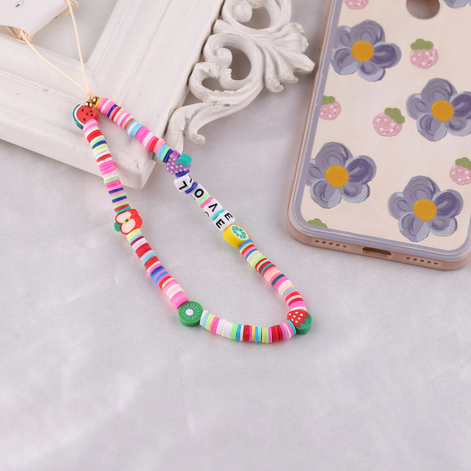 보헤미안 Y2K 소프트 도자기 인쇄 복고풍 사랑 페르시 휴대 전화 체인 교수형 보석 ccd 카메라 끈 구슬 체인스토어 가기