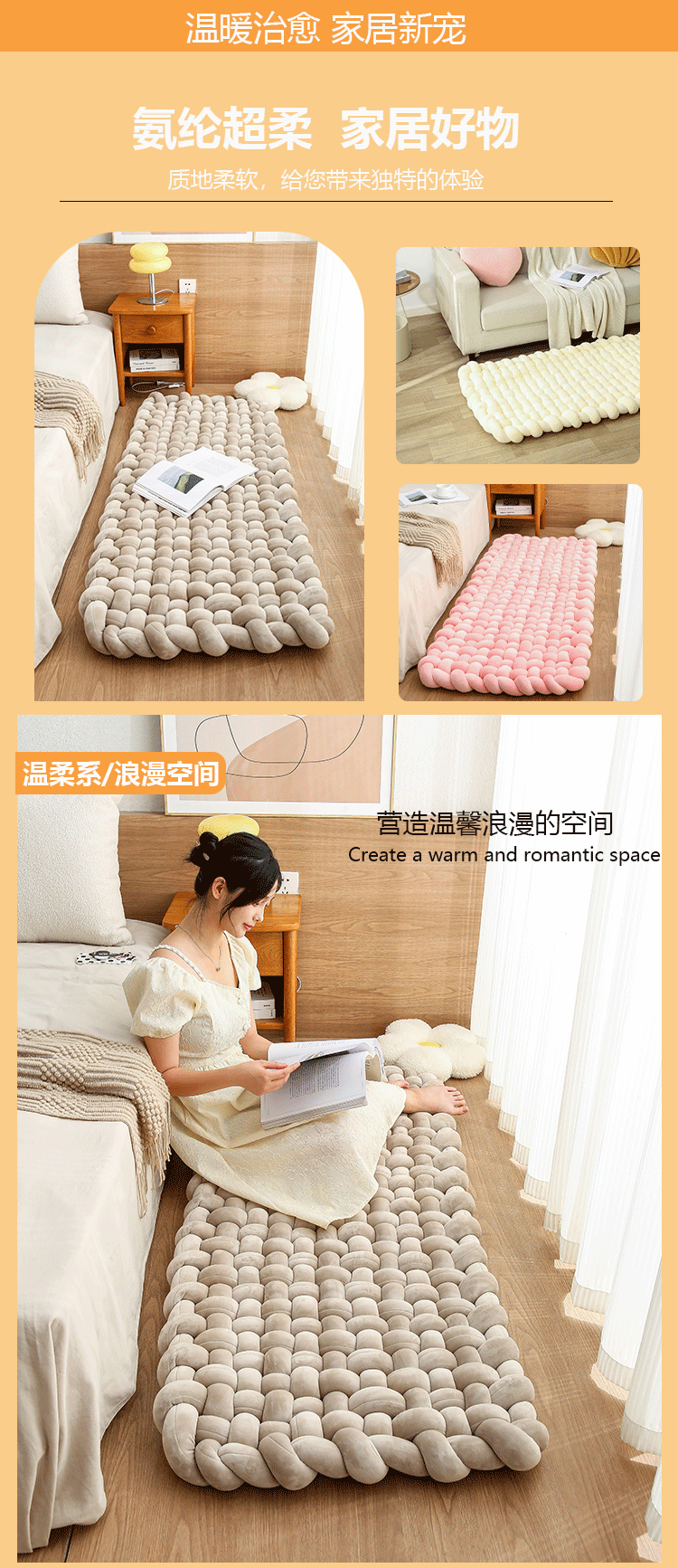 가볍고 고급스럽고 따뜻한 침실 베이 창 매트, 직조 침대 앞 매트, 소파 매트, 낮잠 바닥 매트, 다다미 쿠션, 매트리스 레이아웃