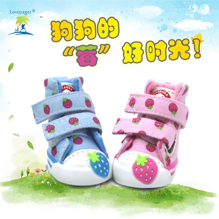 딸기 캔버스 신발 애완 동물 신발 개 신발 테디 작은 개 봄과 가을스토어 가기