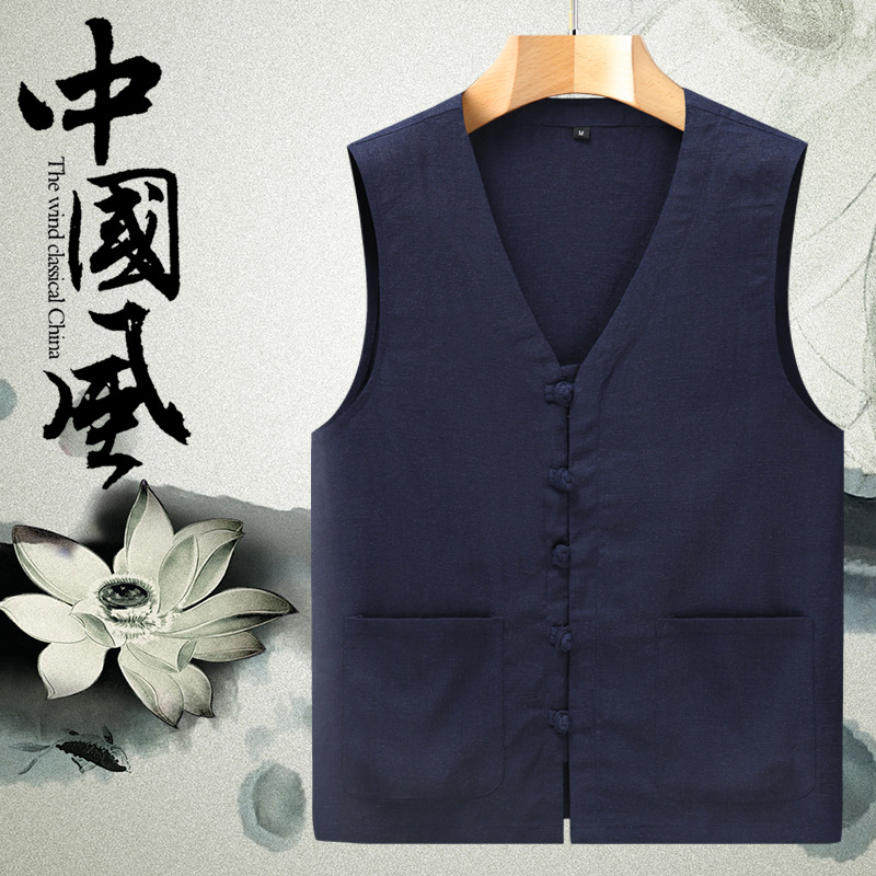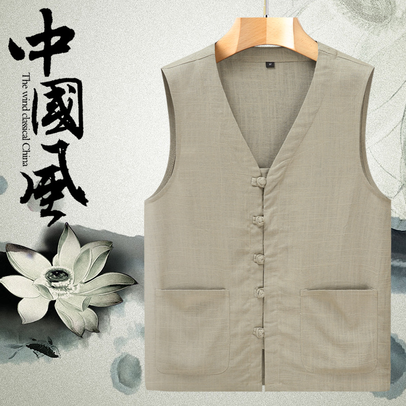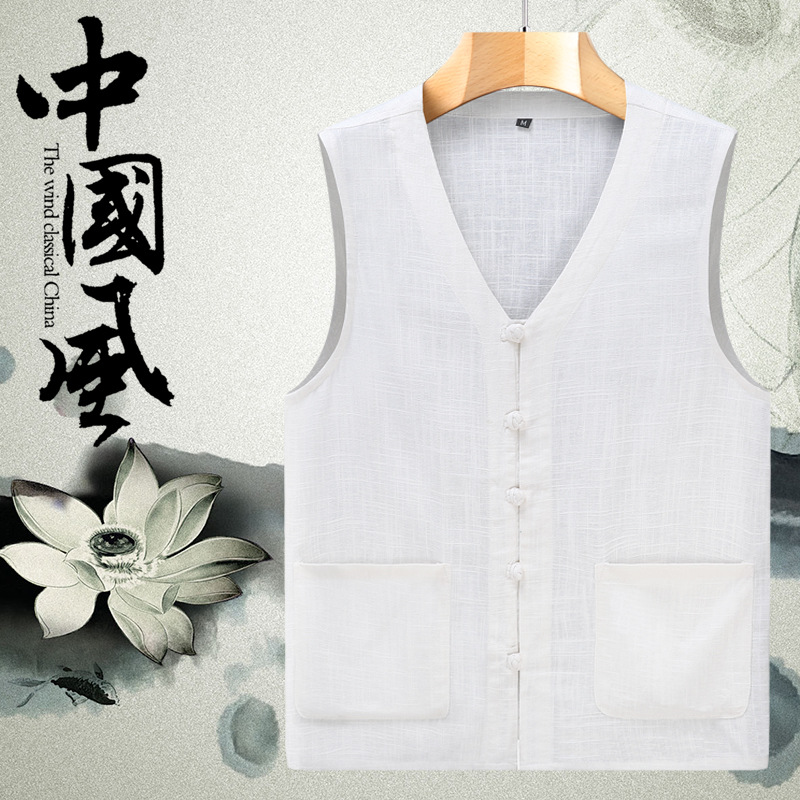 중년 및 노인 면 및 린넨 남자의 여름 얇은 조끼 느슨한 민소매 운동복 조끼 오래 된 헤드 라인 셔츠 플러스 사이즈 Magua 조끼스토어 가기