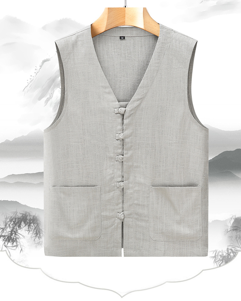 중년 및 노인 면 및 린넨 남자의 여름 얇은 조끼 느슨한 민소매 운동복 조끼 오래 된 헤드 라인 셔츠 플러스 사이즈 Magua 조끼