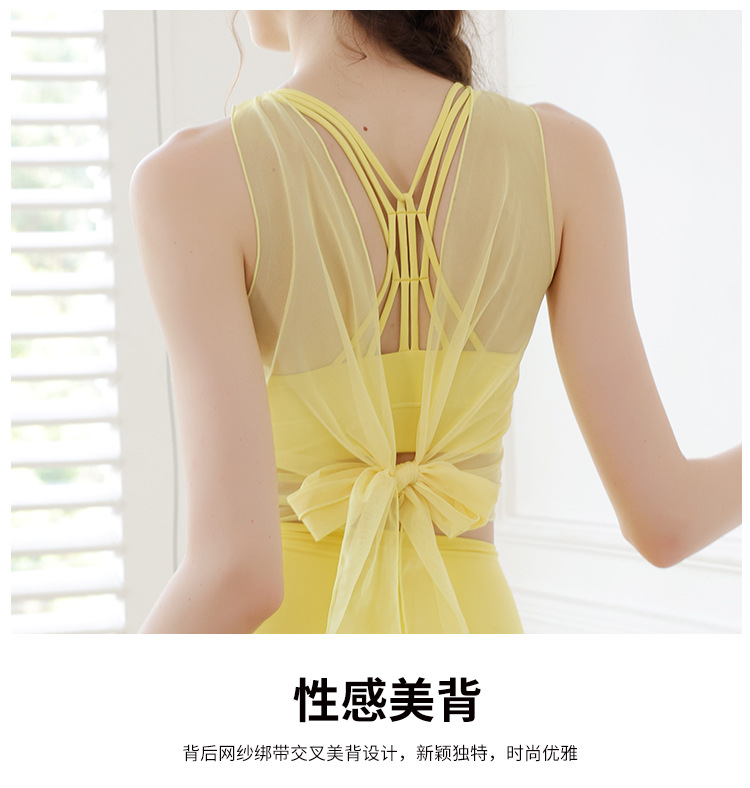 보양 기질 크로스백 요가 세트 세트 여성용 메쉬 스티칭 스트랩 조끼 필라테스 피트니스 투피스 세트