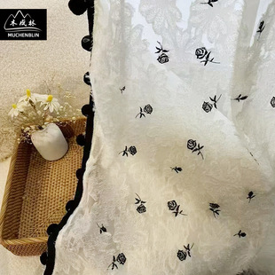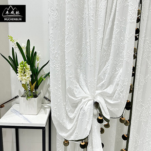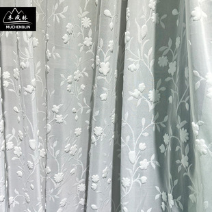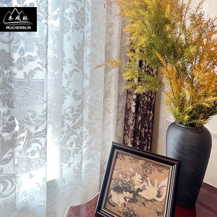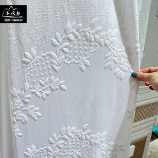 新品加高门幅白色提花割绒窗纱落地窗客厅卧室纱帘现代美式风格