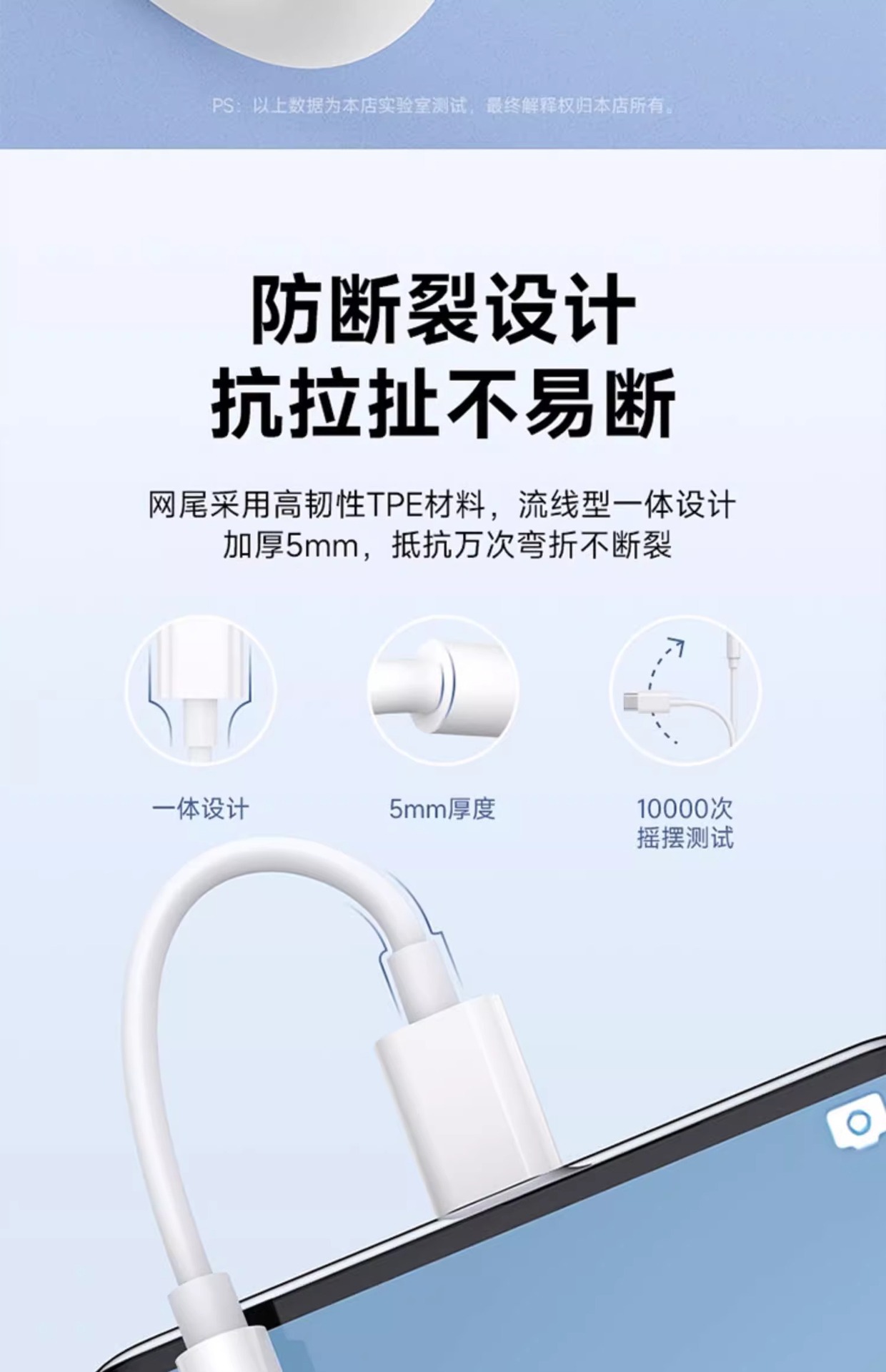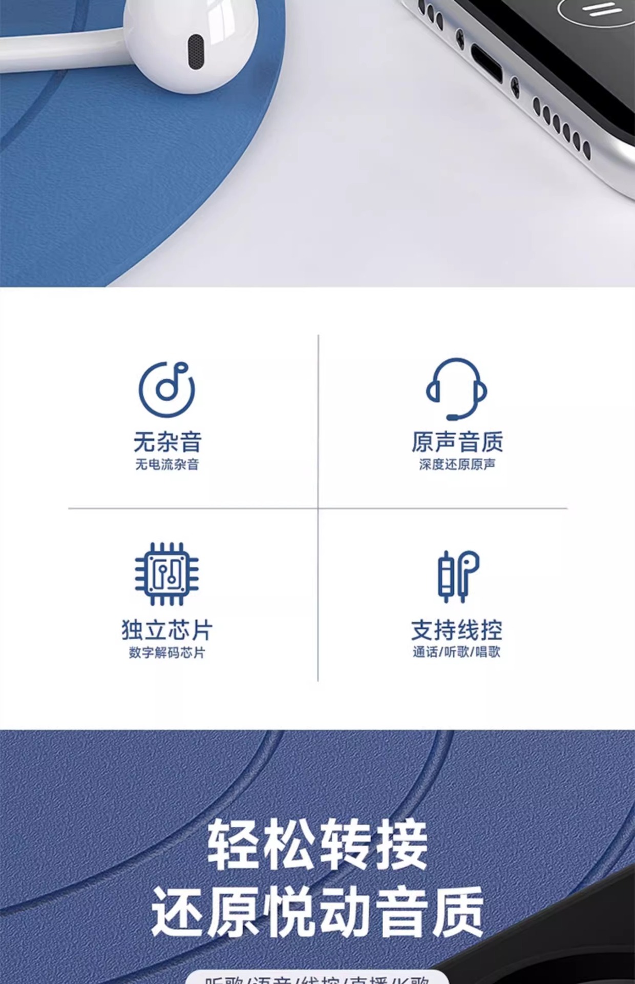 【功能】将接口转换成耳机使用,type-c看电视听歌款只支持取消了3.5mm孔的手机,直播款支持所有type-c接口手机、