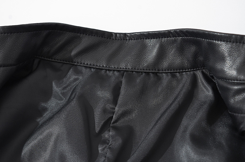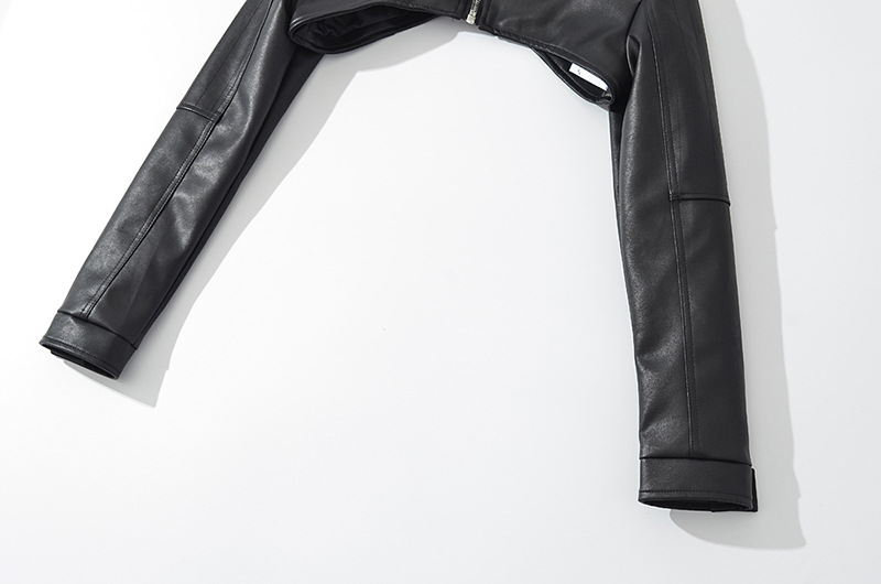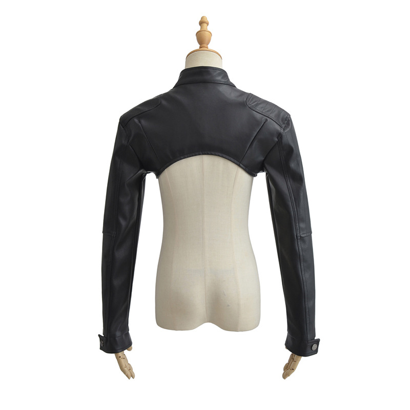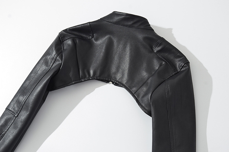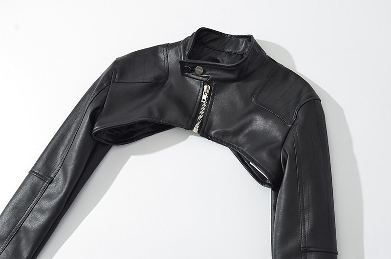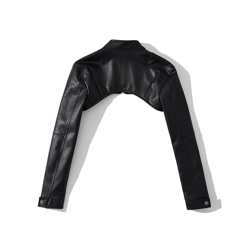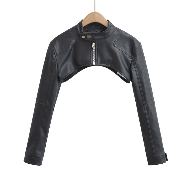 FMY 미국 가을 스탠드 칼라 지퍼 높은 허리 울트라 짧은 가죽 여성 잘 생긴 오토바이 하프 재킷 코트 탑