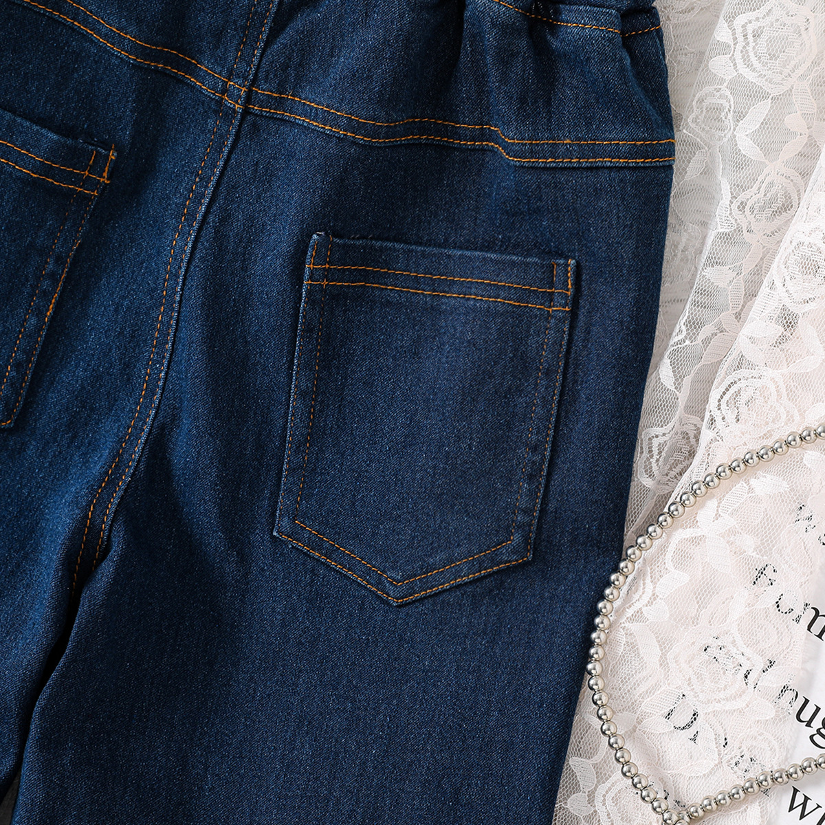 소녀 바지 국경 한국 스타일 바지 스트레치 넓은 다리 데님 바지 2024 봄 아마존 어린이 패션