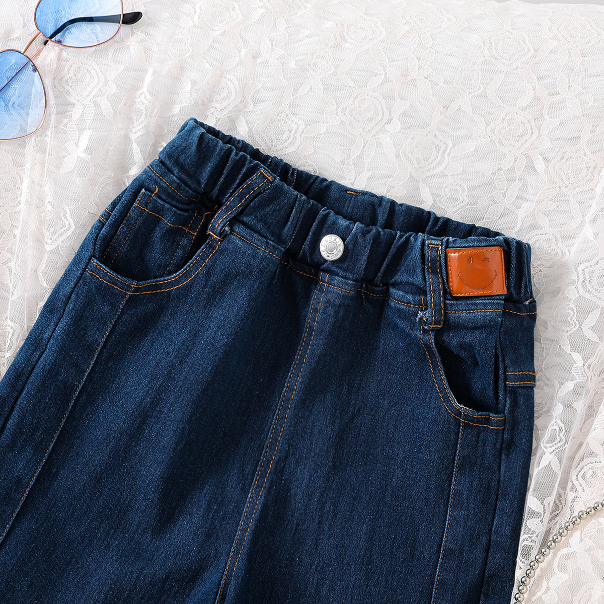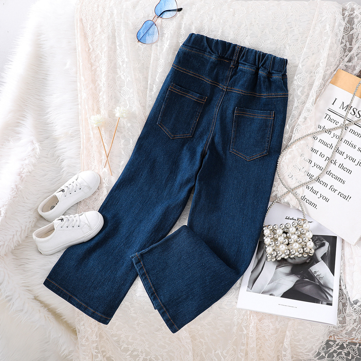 소녀 바지 국경 한국 스타일 바지 스트레치 넓은 다리 데님 바지 2024 봄 아마존 어린이 패션스토어 가기