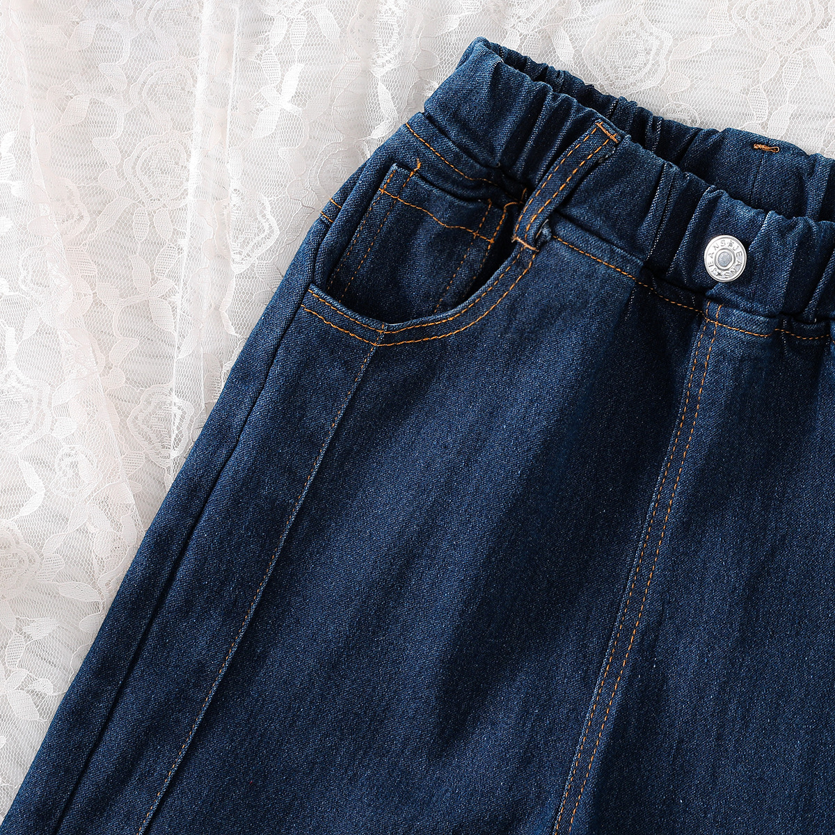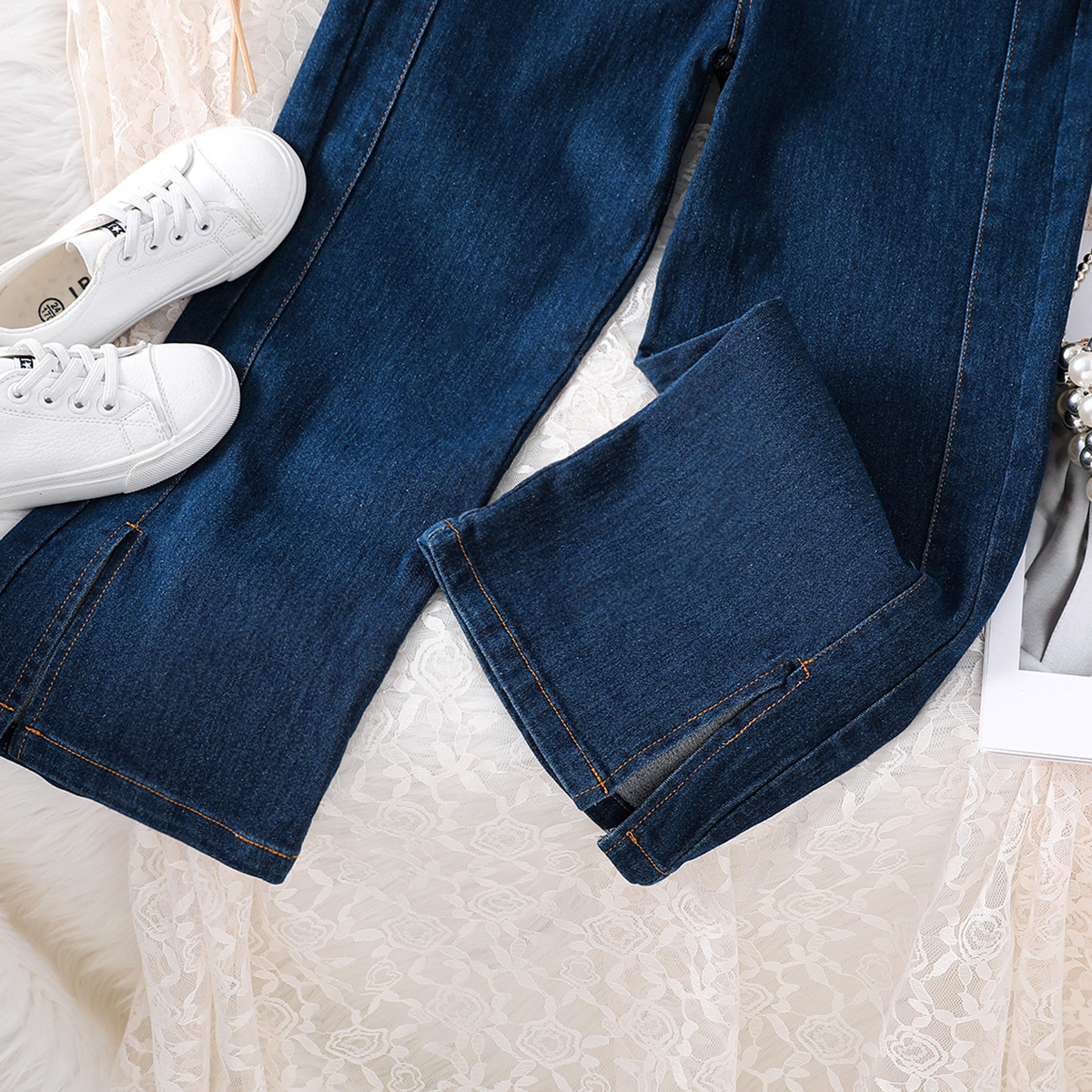 女童裤子跨境韩版裤腿开叉弹力阔腿牛仔长裤2024春季亚马逊童装潮